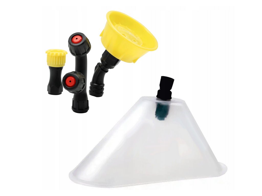 Náš postřikovač má tři základní koncovky, které lze použít pro každou úlohu, a kryt proti herbicidům!