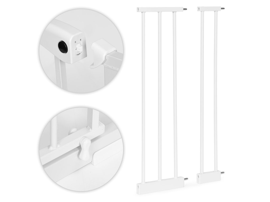 Díky součástí dodávaným prodlužovacím panelům lze bránu rozšířit na šířku od 74 do 105 cm, což zaručuje perfektní přizpůsobení různým dveřím a schodištím. Nastavovací šrouby (8 cm) umožňují přesné přizpůsobení pro dosažení ideálního uchycení.