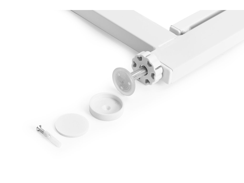 Instalace branky je rychlá a bez nářadí, není třeba vrtat do stěn ani do zárubní. Díky 4bodovému přítlačnému upevňovacímu systému zůstává branka pevně na svém místě, aniž by došlo k poškození povrchů. Ochranné podložky, které jsou součástí sady, navíc zabraňují poškrábání stěn a podlah a zachovávají čistý a stylový vzhled.