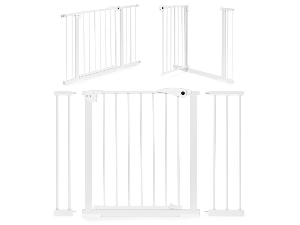 Bezpečnostní zábrana 74-105 cm na schody a dveře, ocel, přídavné panely, bílá
