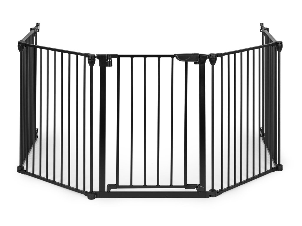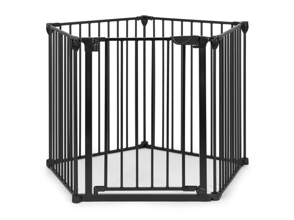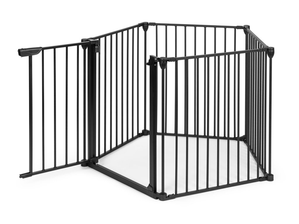 - Integrovaná branka – Střední panel funguje jako dveře s bezpečným zámkem, které dospělým umožňují snadný průchod a zároveň udržují děti v bezpečí.