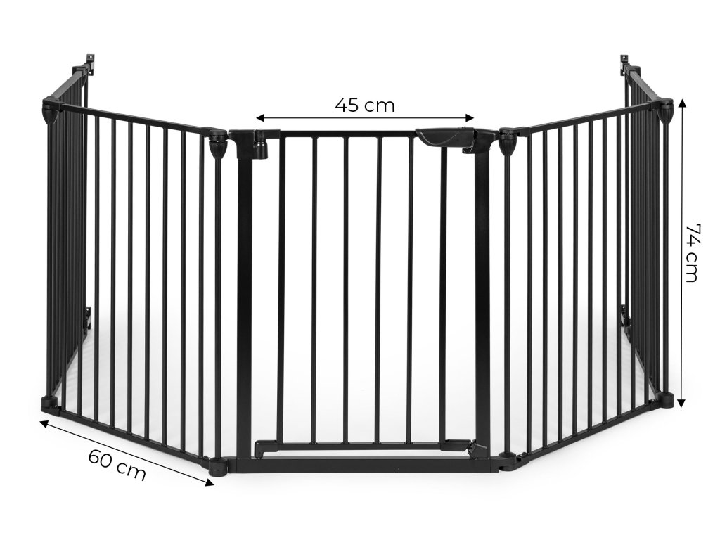 - 5 propojených panelů – Bariéra se skládá z pěti segmentů, které lze přizpůsobit tvaru místnosti nebo krbu.