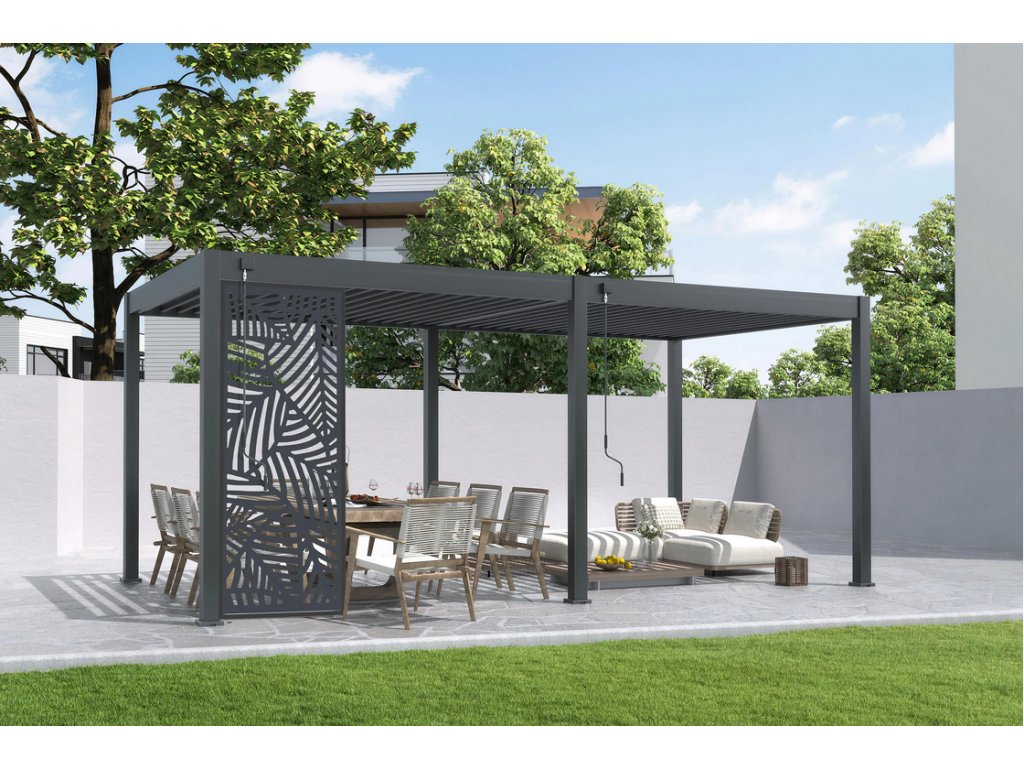 Dodejte své pergole stylový akcent díky modernímu dekorativnímu panelu DECO v antracitové barvě. Byl vytvořen s ohledem na eleganci a pohodlí a ideálně se hodí na terasu, do zahrady nebo do venkovní odpočinkové zóny. Díky své prolamované konstrukci panel DECO zajišťuje dostatečné množství světla a zároveň jemně zakrývá prostor, čímž vytváří útulnou atmosféru a větší soukromí.