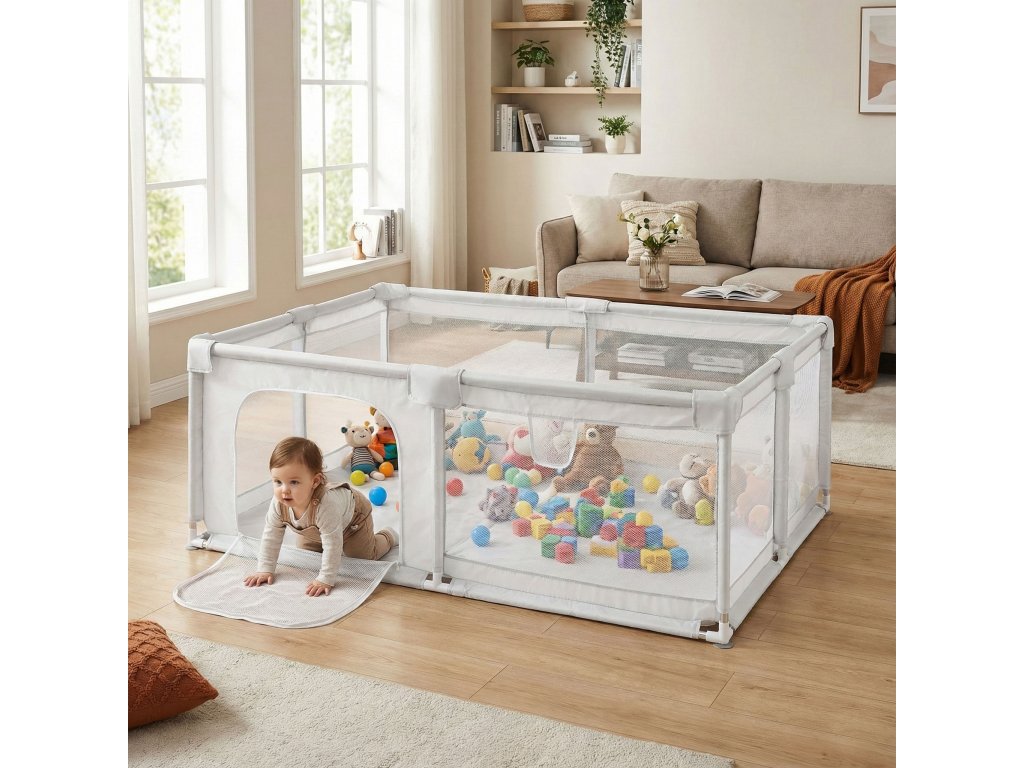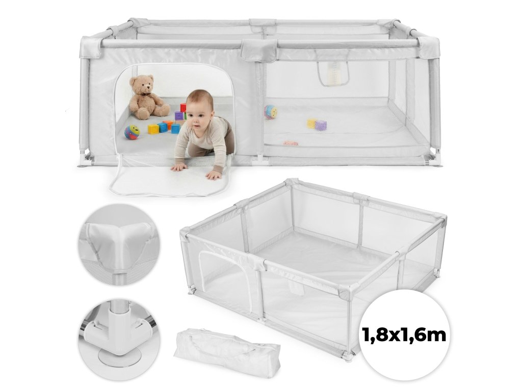 Ohrádka je vynikajícím řešením pro rodiče, kteří chtějí svým dětem poskytnout bezpečné a kontrolované místo na hraní jak doma, tak venku. Díky svým velkým rozměrům se produkt perfektně hodí jako suchý bazén, hrací plocha nebo odpočinkový prostor a jeho konstrukce byla navržena s ohledem na maximální pohodlí dítěte a pohodlí pečovatele. Síťované stěny umožňují neustálý dohled, zatímco lehká konstrukce s přepravní taškou usnadňuje přemísťování nebo vzít hrací ohrádku na výlet. Je to perfektní pomocník pro rodiče – dítě si hraje a vy se můžete v klidu věnovat každodenním povinnostem.