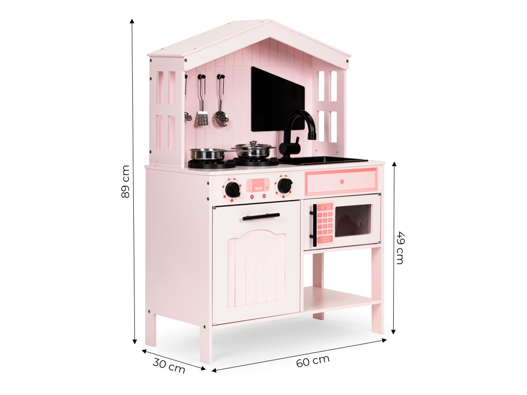 Kuchyně byla navržena tak, aby podněcovala představivost a rozvíjela manuální dovednosti. Má mnoho funkcí skutečné kuchyně; je velká a funkční, vybavená troubou, 2 hořáky, pohyblivým kohoutkem s dřezem a mikrovlnnou troubou. Konstrukce je bezpečná a stabilní, bez ostrých hran, což ji činí ideální pro malé děti. Sada obsahuje 5 kovových kuchyňských doplňků, včetně hrnce, pánve s pokličkou, lopatky, cedníku a lžíce na těstoviny.