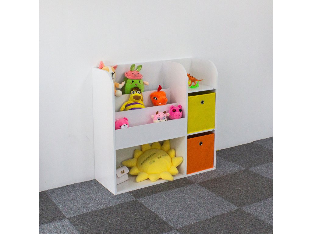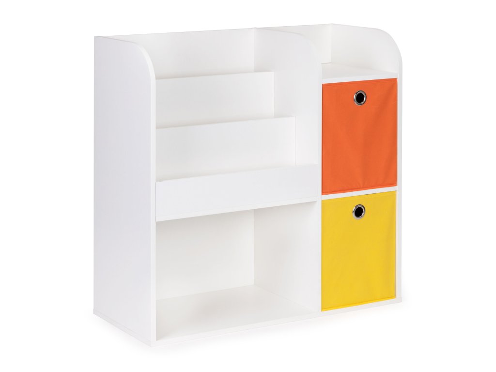 Nábytek je vyroben z odolné dřevotřísky a povrchově upraven odolným laminátem. Do hlubokých přihrádek se vejdou oblíbené knihy, alba, omalovánky a časopisy, zatímco police jsou ideální pro vystavení hraček. Součástí sady jsou navíc 2 prostorné látkové koše, které jsou ideální pro kostky a další doplňky.