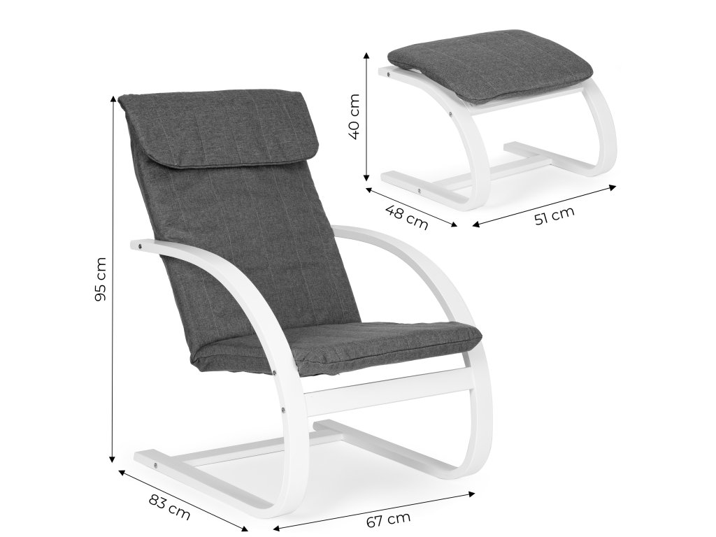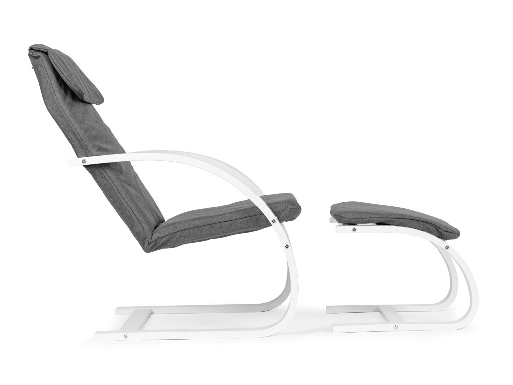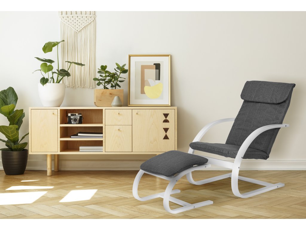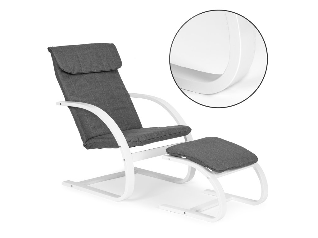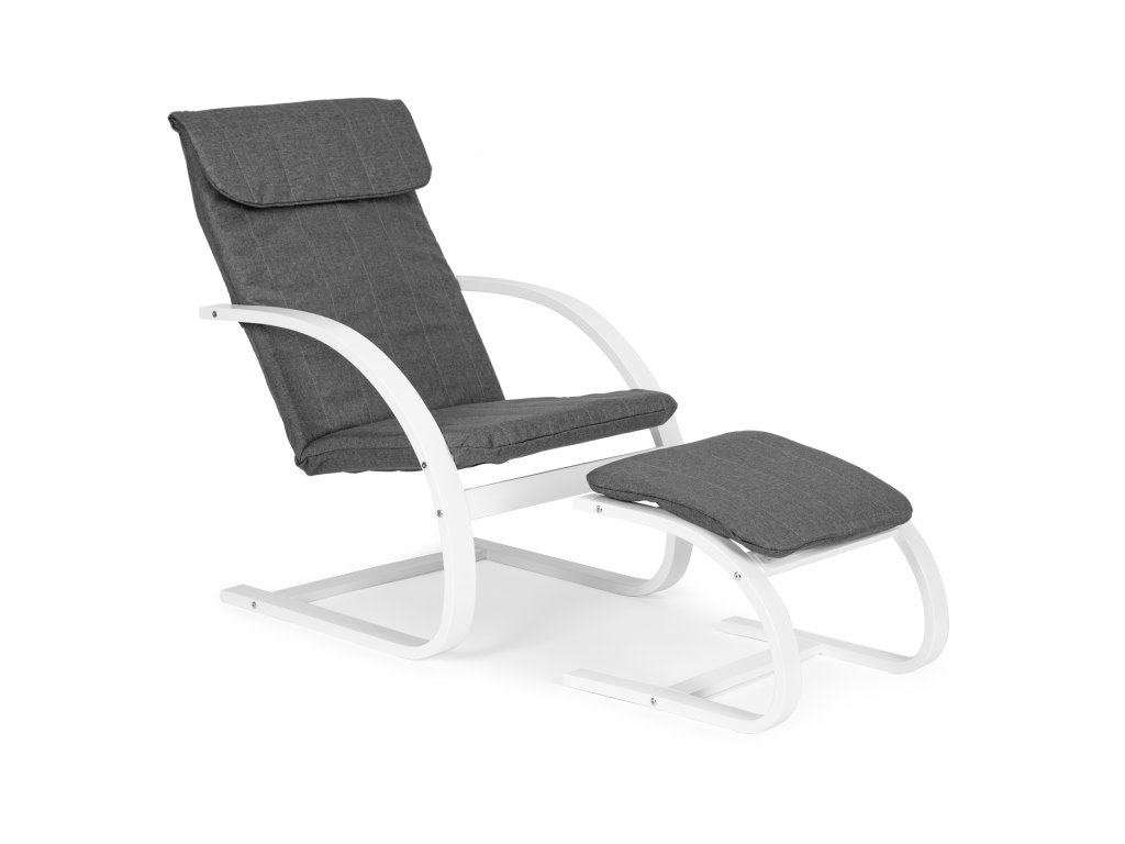 Finské houpací křeslo s podnožkou, lehátko do obývacího pokoje šedá/bílá
