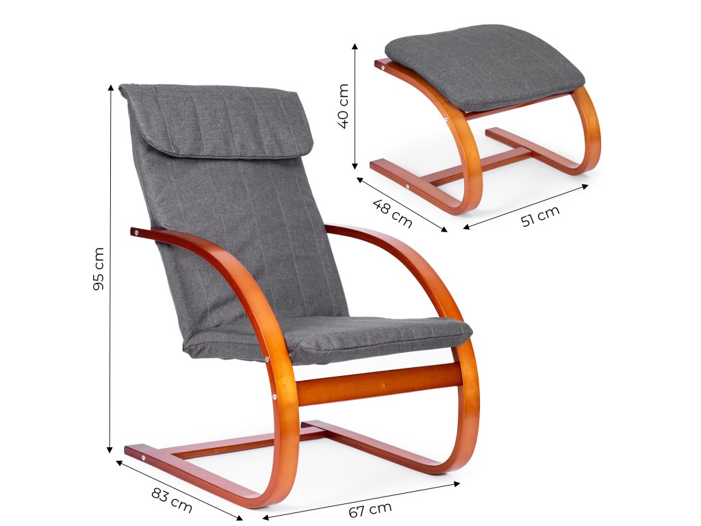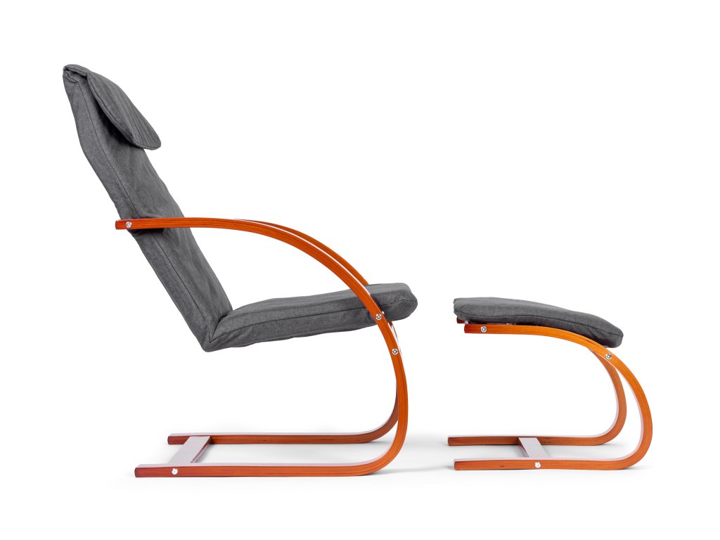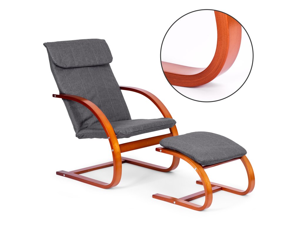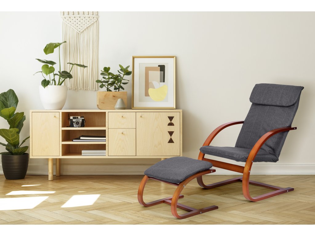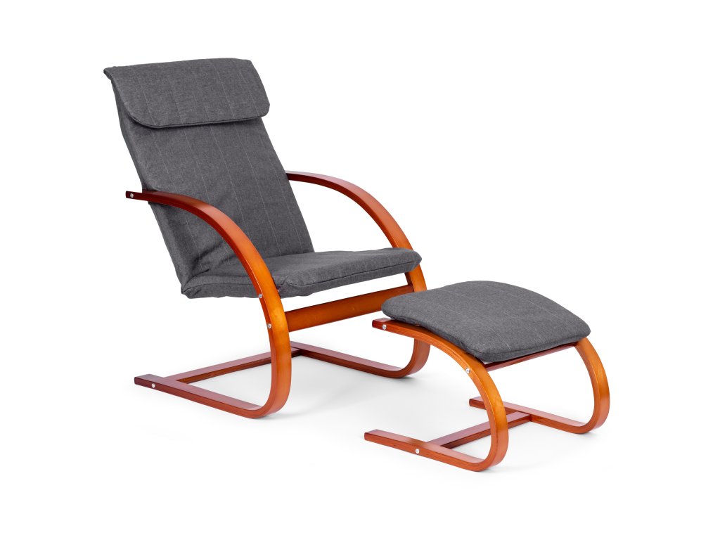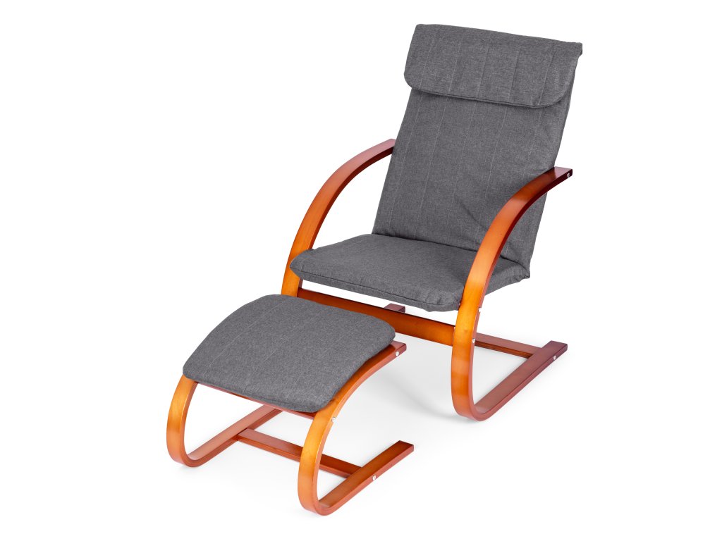 Finské houpací křeslo s podnožkou, lehátko do obývacího pokoje šedá/ořech