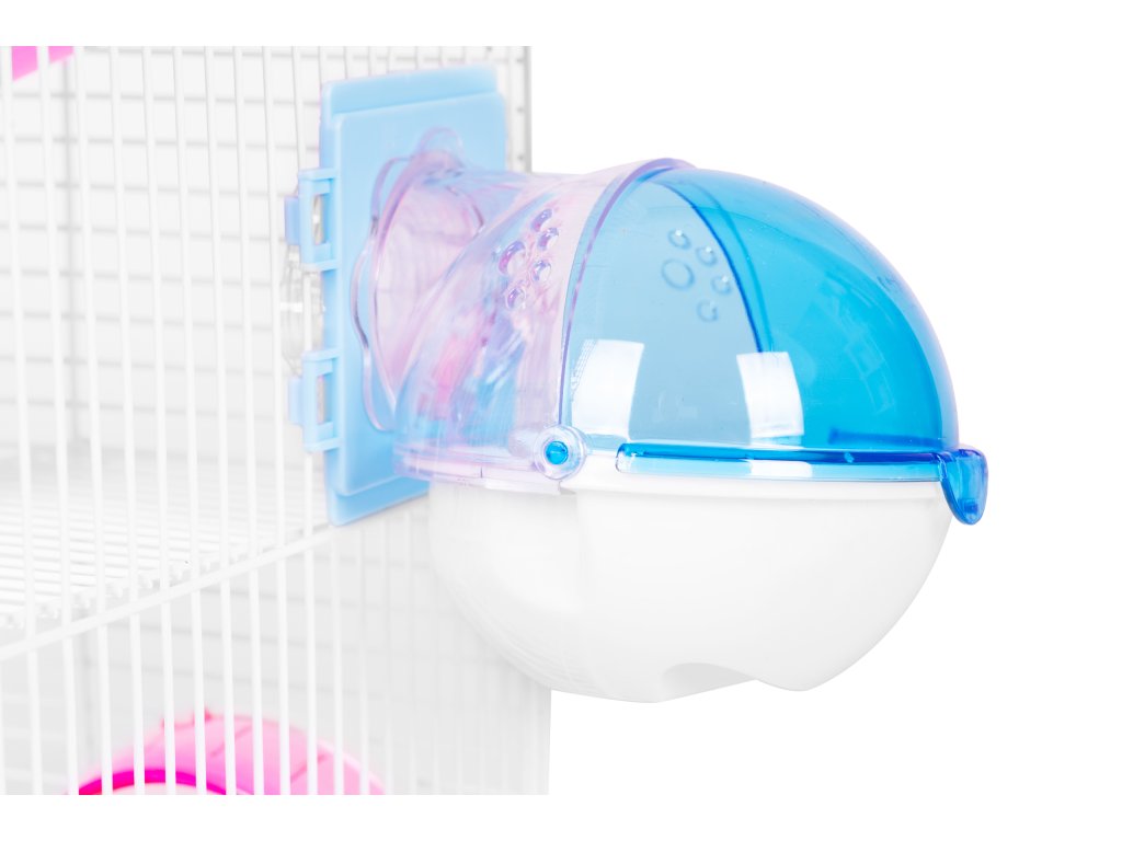 - Obsahuje: domeček, skluzavky, láhev na vodu, cvičební kolečko, čtyři úrovně, misku na krmení