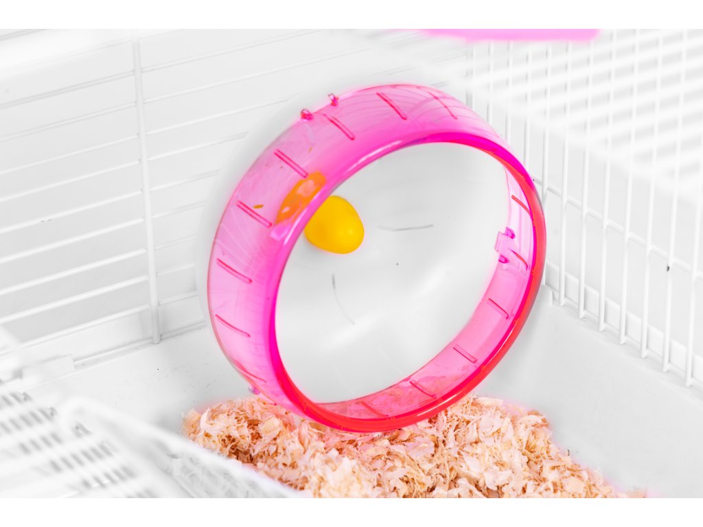 - Dvě skluzavky, domeček a běžecké kolečko – poskytují místo k odpočinku a podněcují k aktivitě. Vaše hlodavce si mohou užít skluzavky, běhat v kolečku a pak odpočívat v domečku.