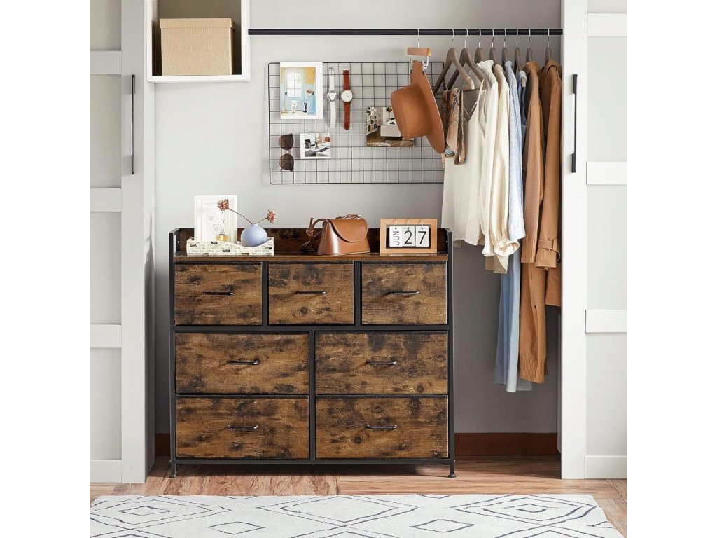 Komoda skříňka do ložnice, obývacího pokoje, předsíně, 7 zásuvek, rustikální hnědá