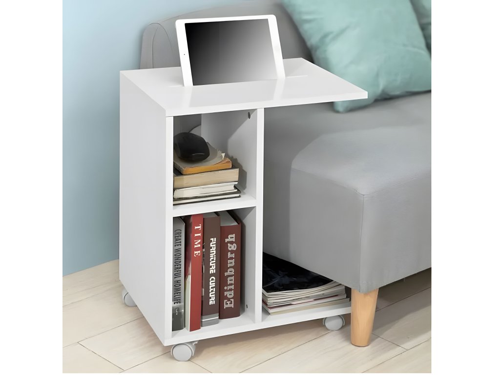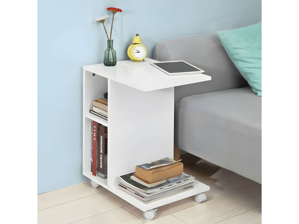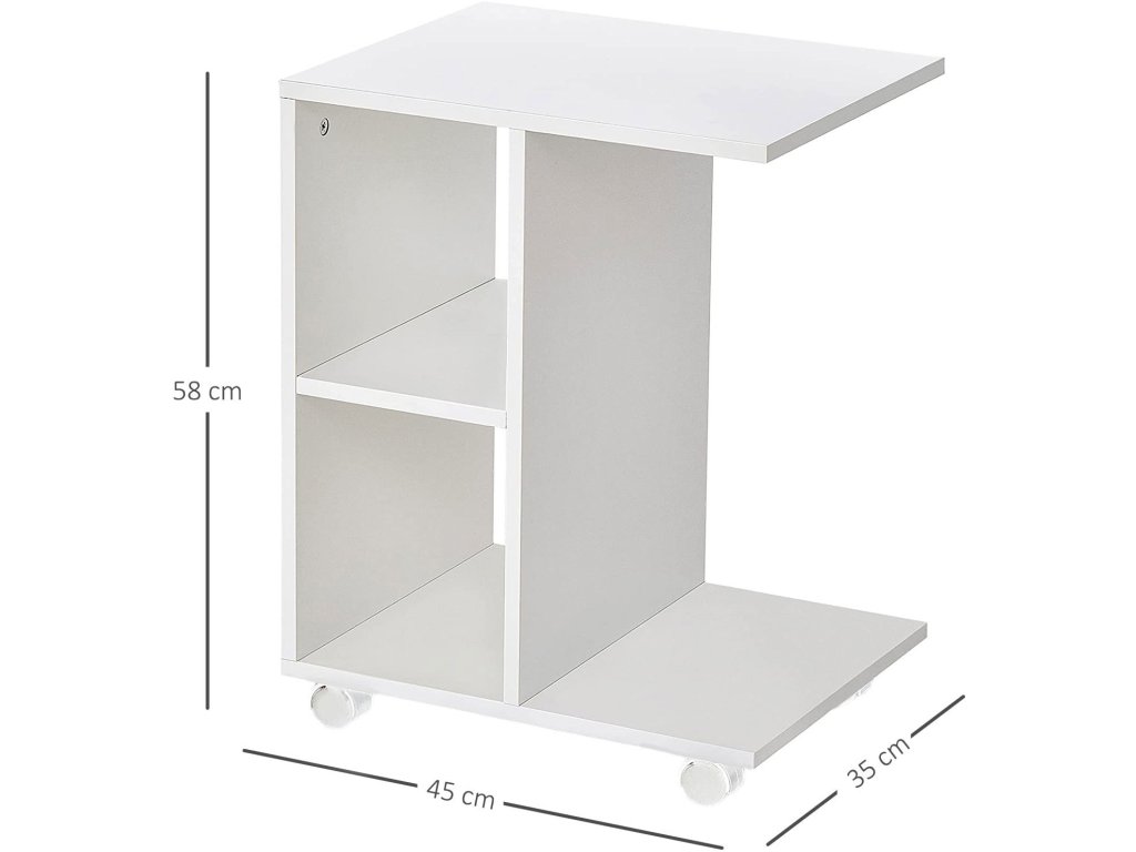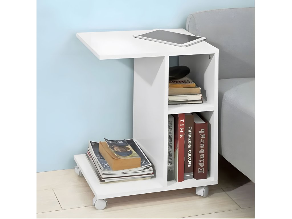 Kus je vyroben z dřevotřískové desky s melaminovým povrchem, díky čemuž je odolný proti poškrábání a skvrnám. 4 funkční police pojmou knihy, časopisy nebo dokonce malé květináče. Skvěle poslouží jako konferenční stolek i noční stolek, takže budete mít vše potřebné po ruce. Transportní kolečka usnadňují přesun i v naloženém stavu.