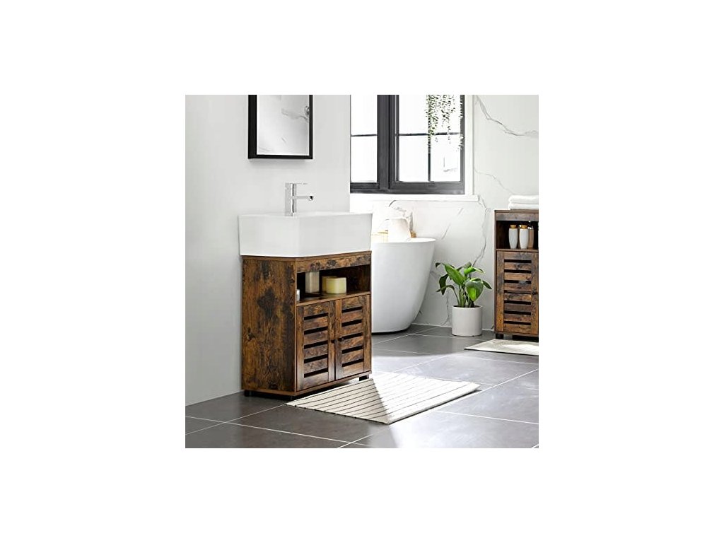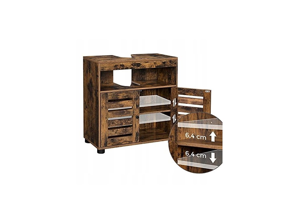 Koupelnová skříňka pod umyvadlo, regál, komoda s nastavitelnou policí, rustikální hnědá