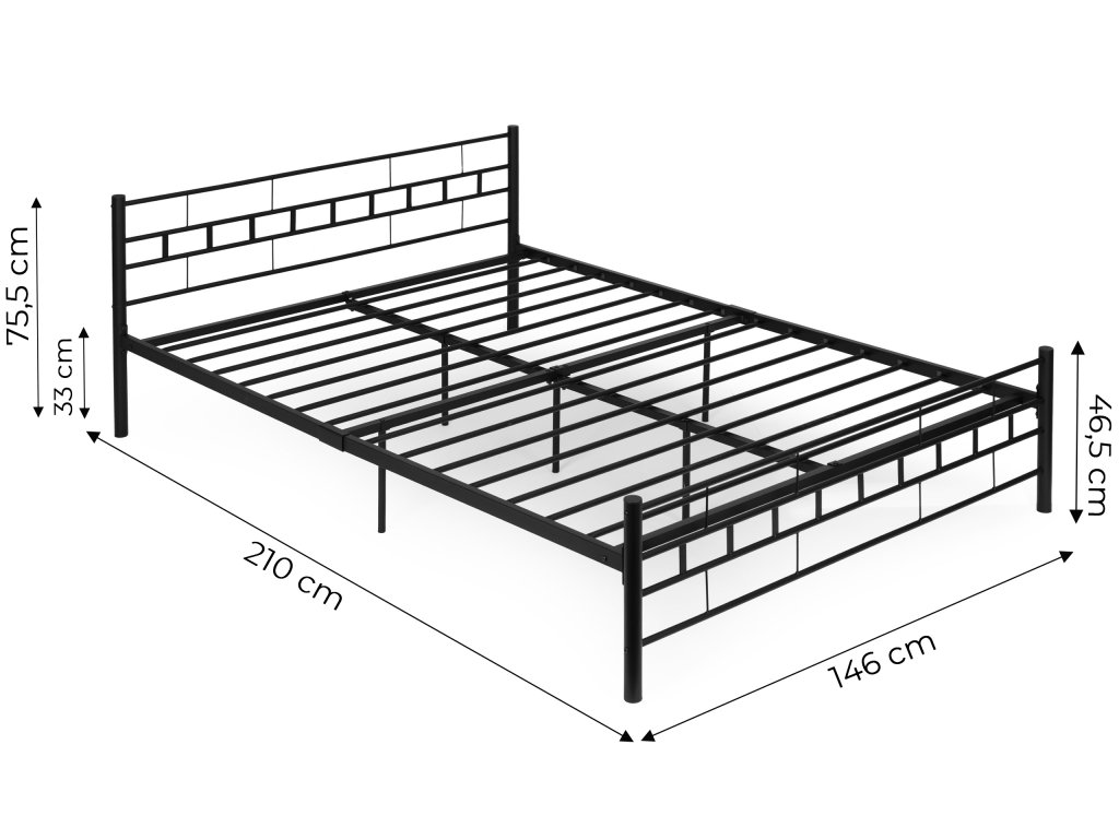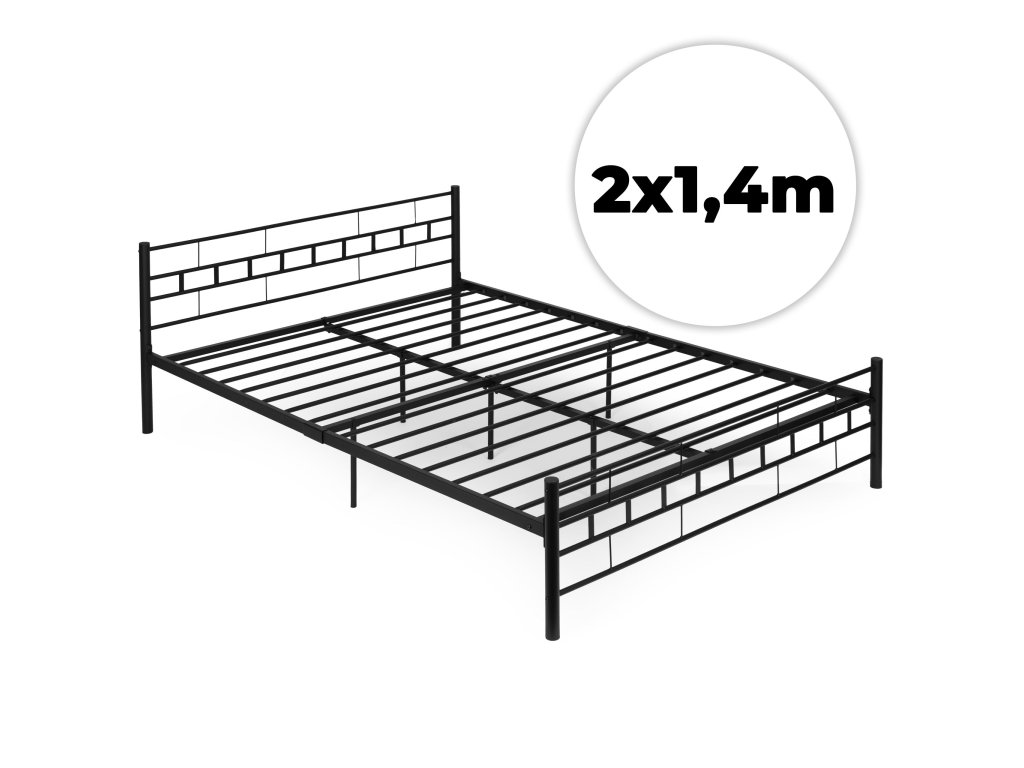 Kovová postel 140x200 cm s rámem, černý rám