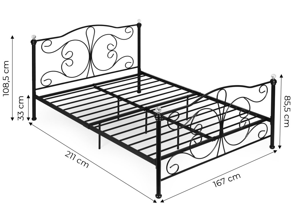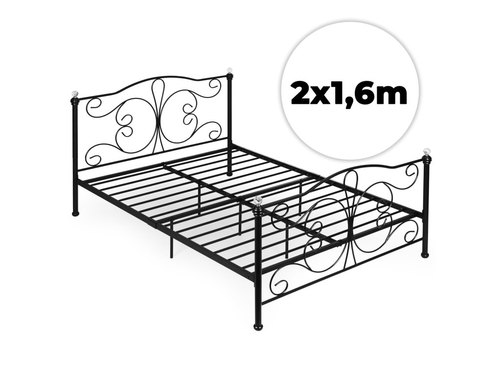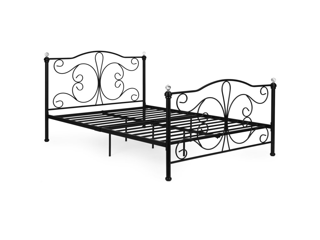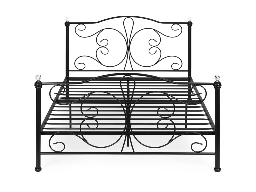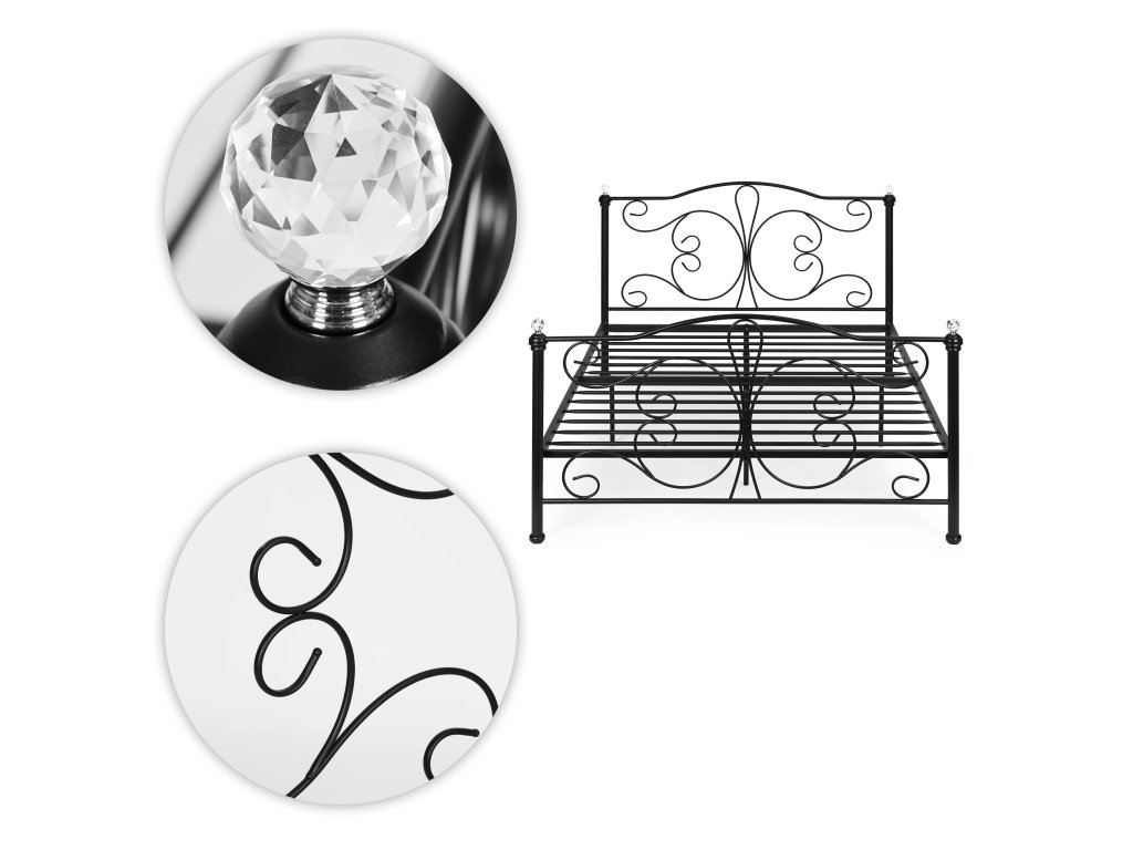 Kovová postel 160x200 cm s rámem, černý rám, krystaly