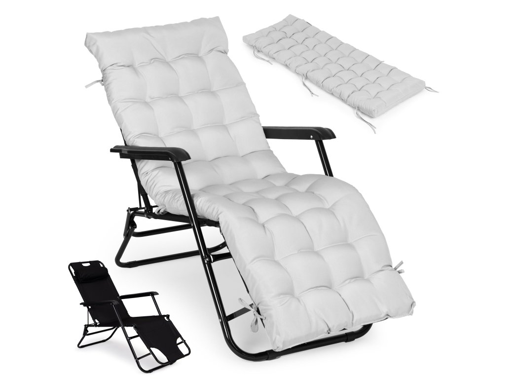 Představte si ideální relaxaci - hřejivé sluneční paprsky, lehký vánek a vy odpočíváte na pohodlném lehátku s měkkým polštářem. Díky funkci úplného rozložení jej můžete proměnit v pohodlné lehátko nebo kempinkové lůžko, ideální pro opalování, čtení knihy nebo zdřímnutí na čerstvém vzduchu. Ergonomický design a měkký polštář se přizpůsobí tělu a pevná základna zaručuje stabilitu. Je to skvělá volba na zahradu, terasu nebo pláž - relaxace, kterou si zasloužíte.