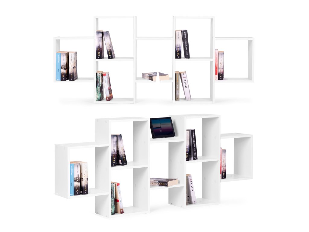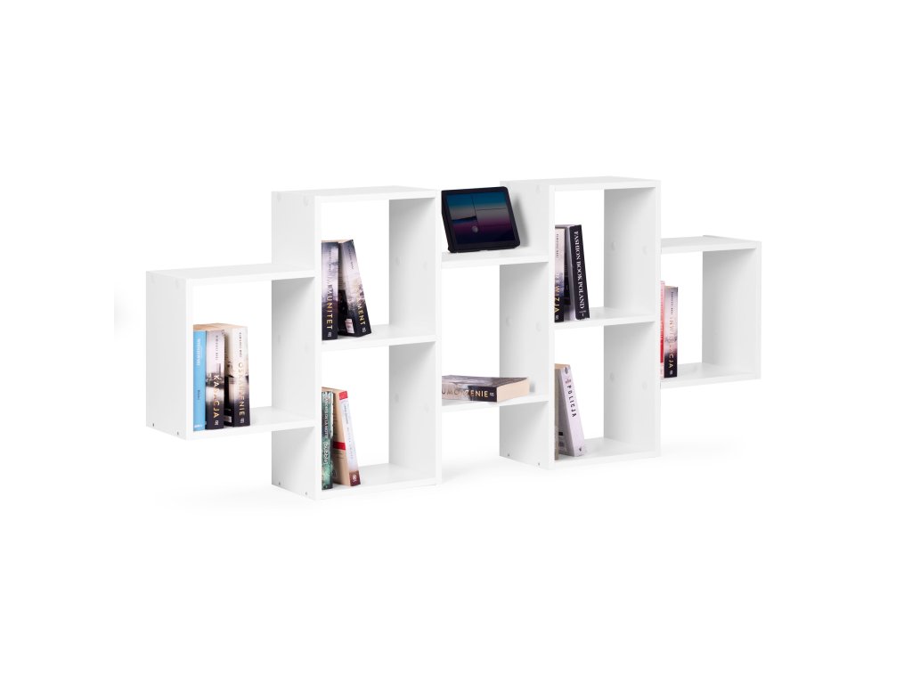 Moderní závěsná mřížková police s 8 policemi, bílá