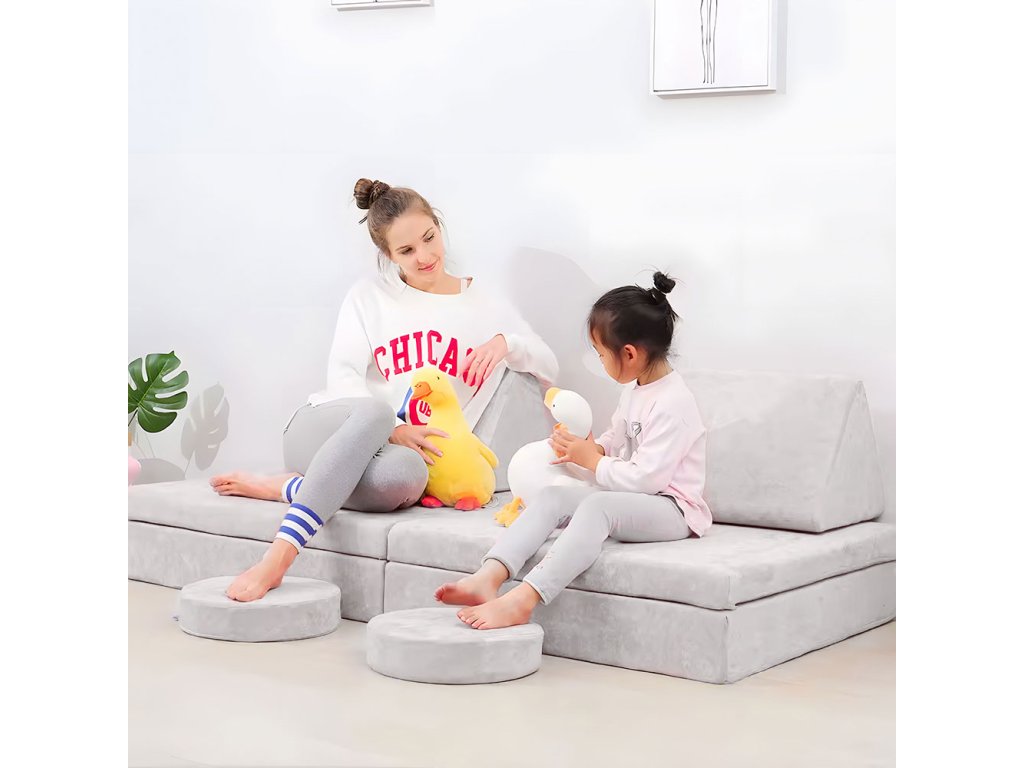 Modulární pohovka pro děti je jedinečný produkt, který vašemu dítěti zajistí pohodlí a radost ze hry. Sada se skládá z 8 měkkých polštářů, které lze libovolně skládat a vytvářet tak různé konfigurace. Díky šedé barvě bude pohovka perfektním doplňkem do každého dětského pokoje. Je vyrobena z vysoce kvalitních materiálů, je bezpečná a odolná, ideální pro každodenní použití. Není to jen kus nábytku, ale také místo pro kreativní hraní a odpočinek.