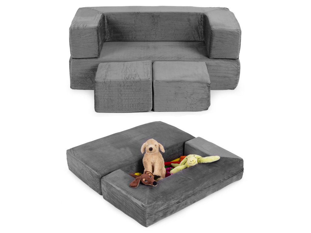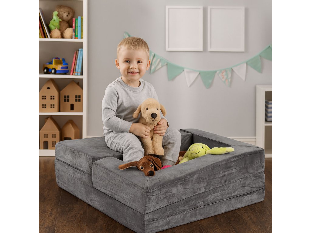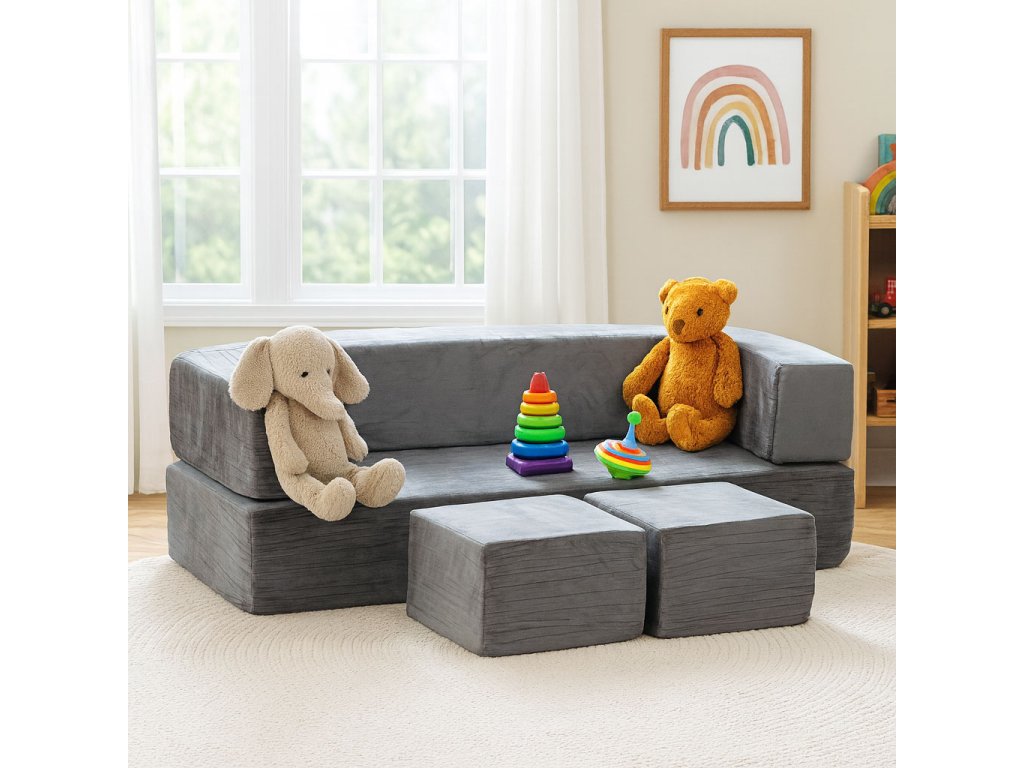 Modulární skládací pohovka pro děti 4 měkké polštáře – šedá