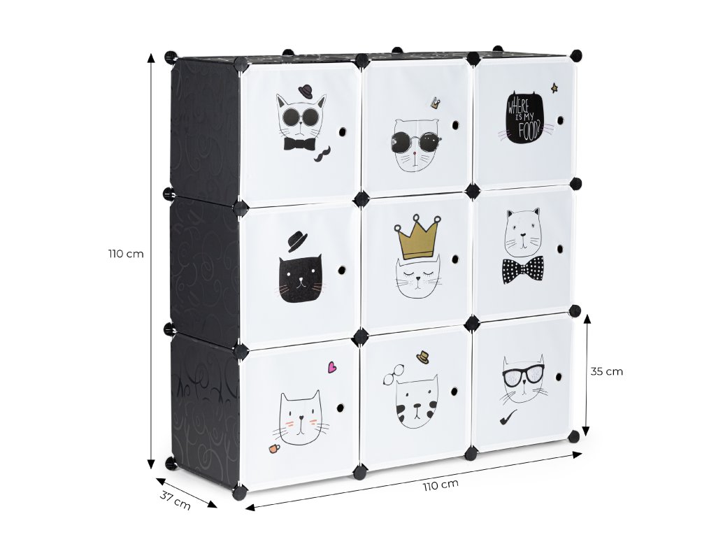 Modulární skříňka je ideálním nábytkem do každého dětského pokoje. Jedná se o modulární skříňku sestávající z 9 polic, které lze libovolně uspořádat tak, aby nábytek vyhovoval individuálním potřebám a preferencím dítěte. Skříňka se vyznačuje lehkou konstrukcí, vyrobenou z odolných a odolných polypropylenových panelů (ABS), které jsou pro větší pevnost a stabilitu vyztuženy kovovým rámem.