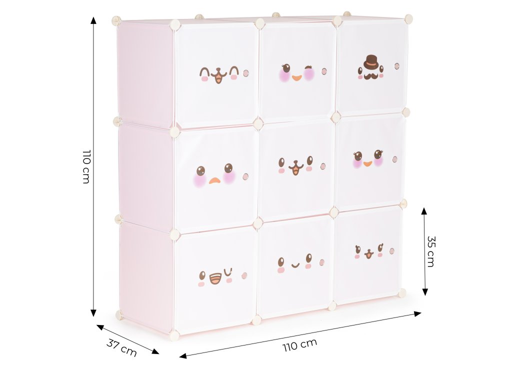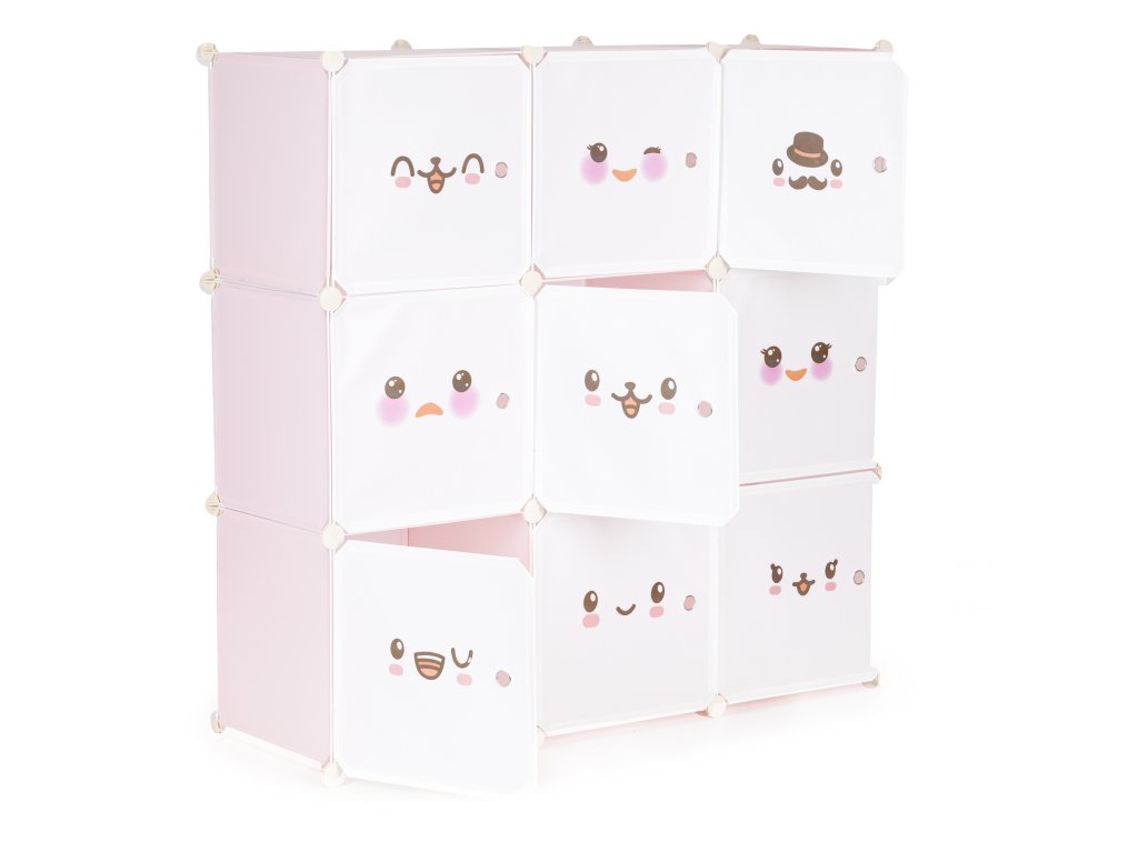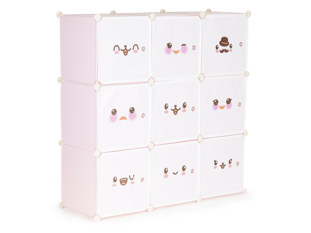 Modulární skříň je ideálním nábytkem do každého dětského pokoje. Jedná se o modulární skříň sestávající z 9 polic, které lze libovolně uspořádat tak, aby nábytek vyhovoval individuálním potřebám a preferencím dítěte. Skříňka se vyznačuje lehkou konstrukcí, vyrobenou z odolných a odolných polypropylenových panelů (ABS), vyztužených kovovým rámem pro větší pevnost a stabilitu.