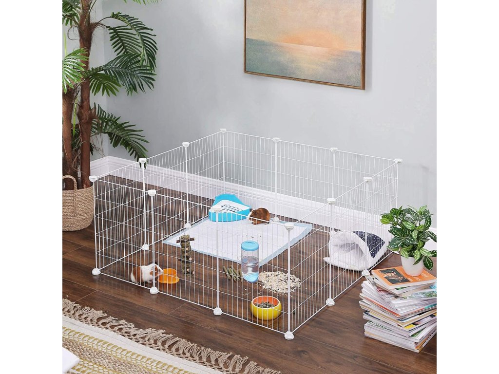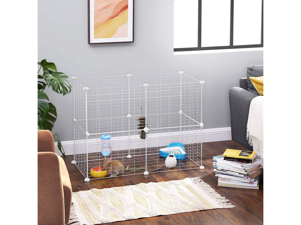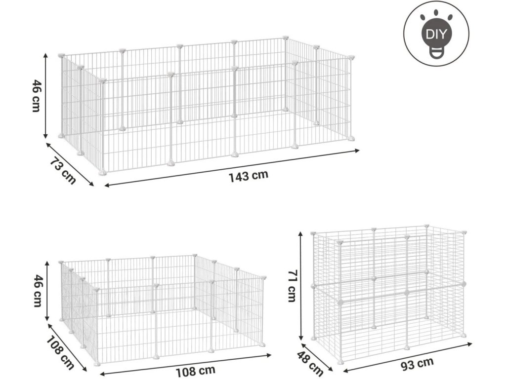 Tento modulární výběh je skvělým řešením pro majitele domácích mazlíčků, kteří chtějí svým zvířátkům vytvořit bezpečný a vyhrazený prostor v domácnosti. Je ideální pro křečky, morčata, ježky, zakrslé králíky a další malé hlodavce. Mřížka má mezery široké pouze 2,5 cm, takže se zvířátka nemohou protáhnout a jsou tak v bezpečí. Kovové panely také zajišťují dobrou cirkulaci vzduchu a umožňují neustálý dohled na vašeho mazlíčka. Vytvořte útulný koutek, který si váš chlupatý kamarád zamiluje.
