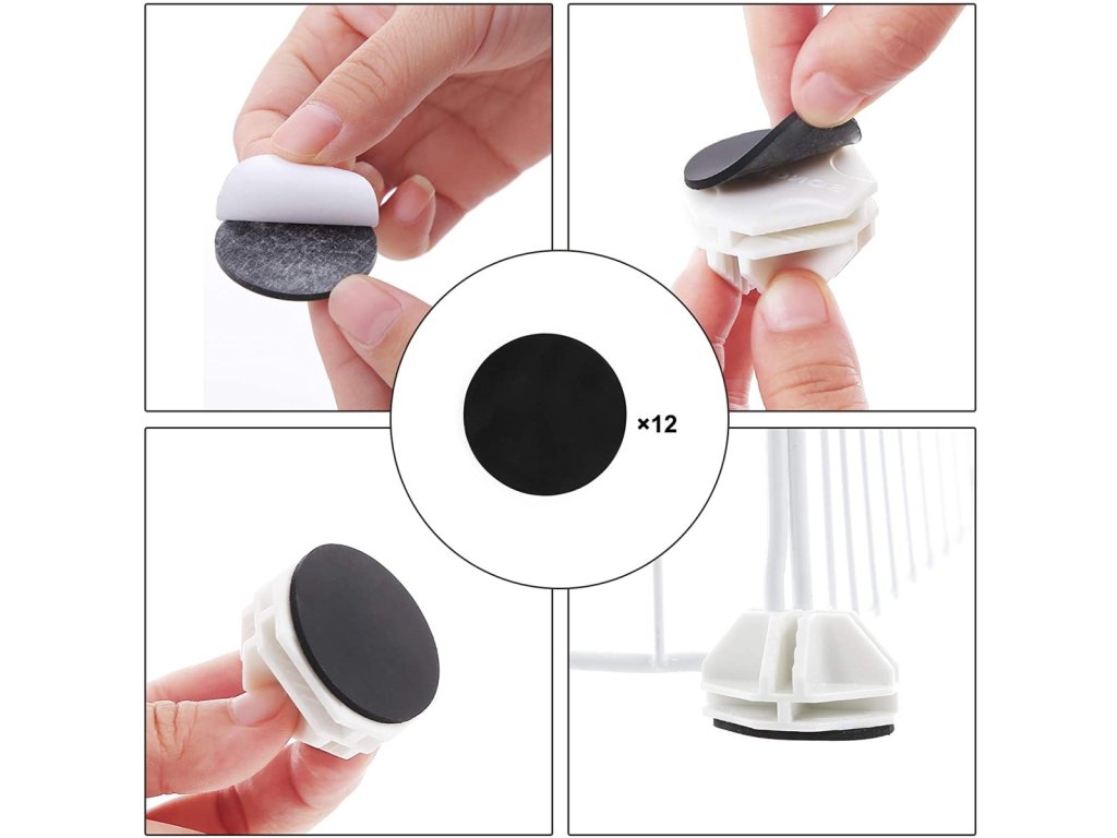 - Spojky zasuňte do určených otvorů v panelech. Pro větší stabilitu doporučujeme použít také protiskluzové podložky.