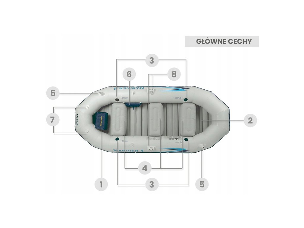 Nafukovací člun INTEX Mariner 4 je univerzální plavidlo vhodné pro širokou škálu aktivit – od rekreačních výletů po jezerech a rybářských výprav až po rafting na řekách. Díky své robustní konstrukci a vysoké nosnosti (500 kg) poskytuje pohodlné podmínky pro čtyři osoby a dostatek prostoru pro vybavení. Milovníci vody ocení měkkou nafukovací podlahu, která nabízí pohodlí i při dlouhých hodinách strávených na vodě. Ať už plánujete rodinné dobrodružství, výlet na divoká rybářská místa nebo si jen chcete užít klid vody, Mariner 4 od INTEX je vaším spolehlivým společníkem na cesty!