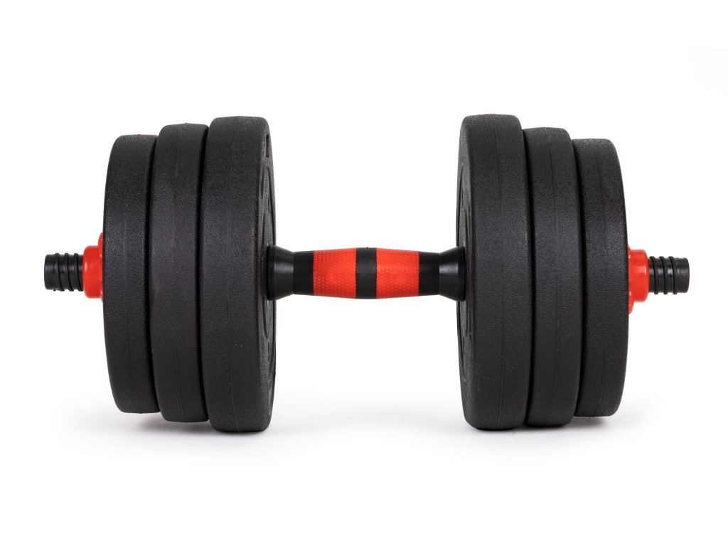 Sada obsahuje 16 kotoučů, takže si můžete hmotnost přizpůsobit svým potřebám. Rukojeti jsou ergonomicky tvarované pro bezpečné uchopení během cvičení.