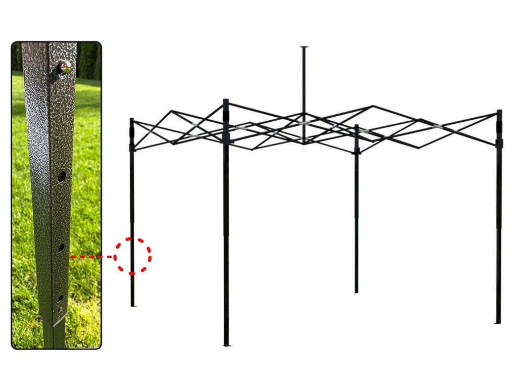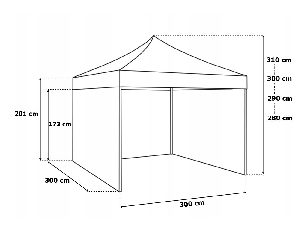- Vnější rozměry (délka x šířka): 300 x 300 cm Výška: 280-310 cm (REGULOVATELNÁ)
