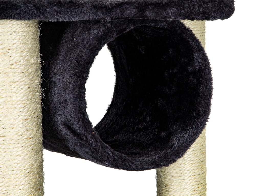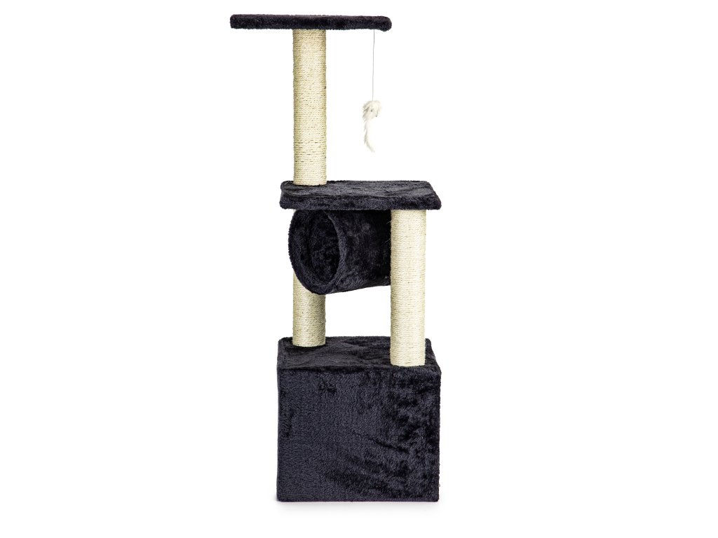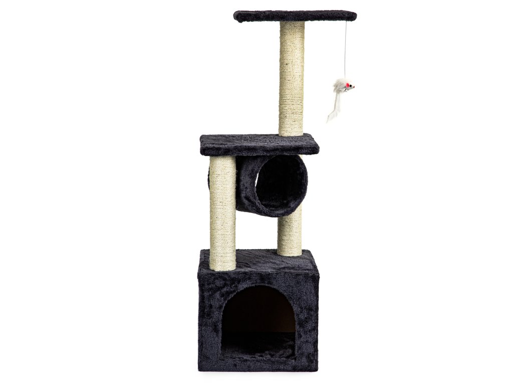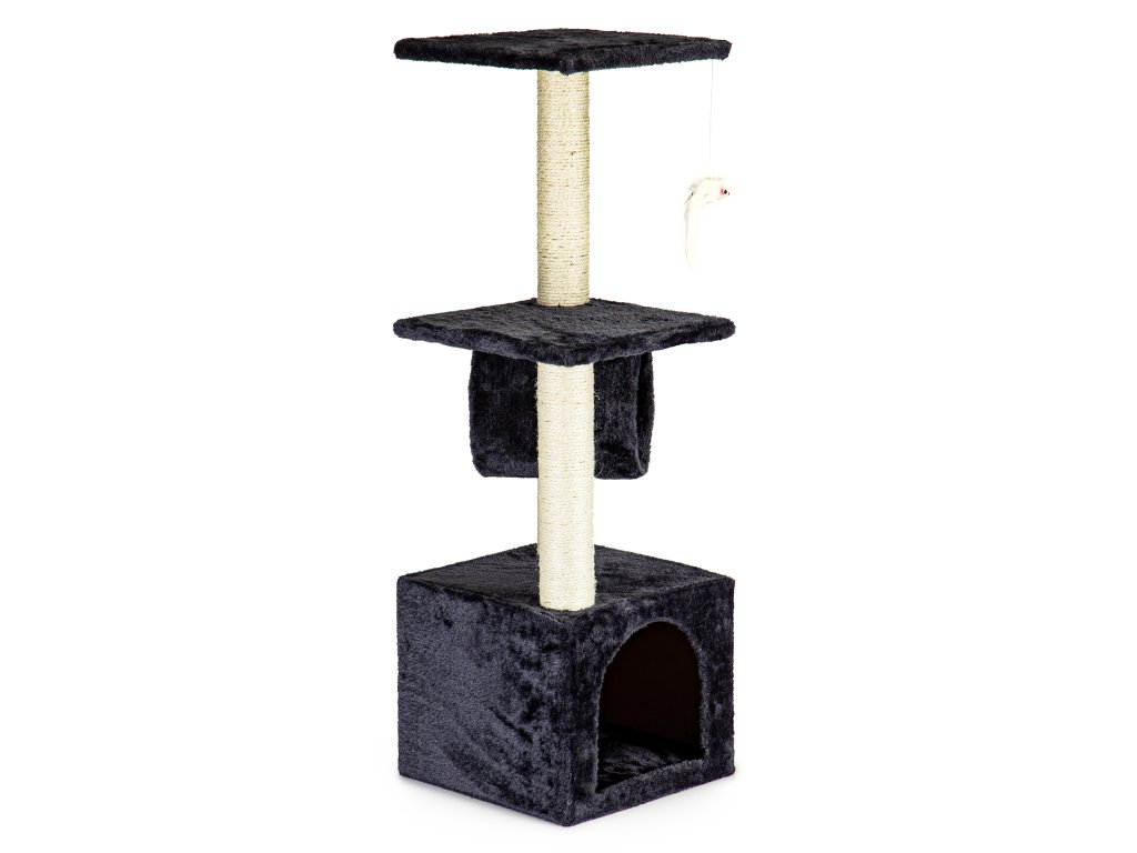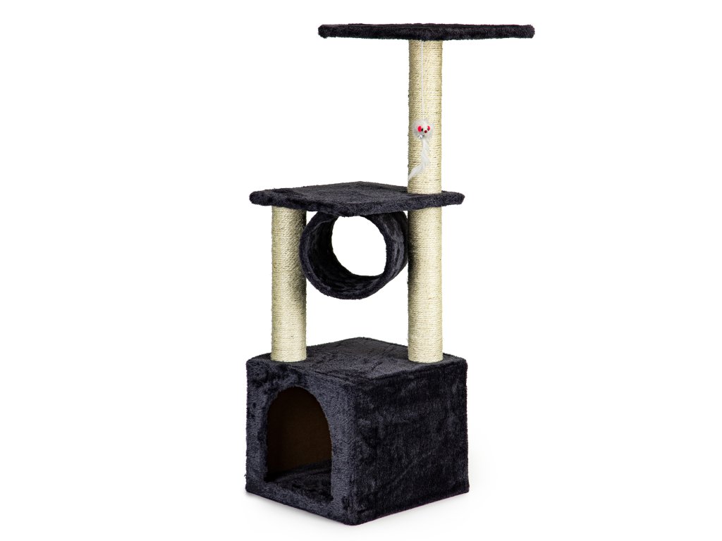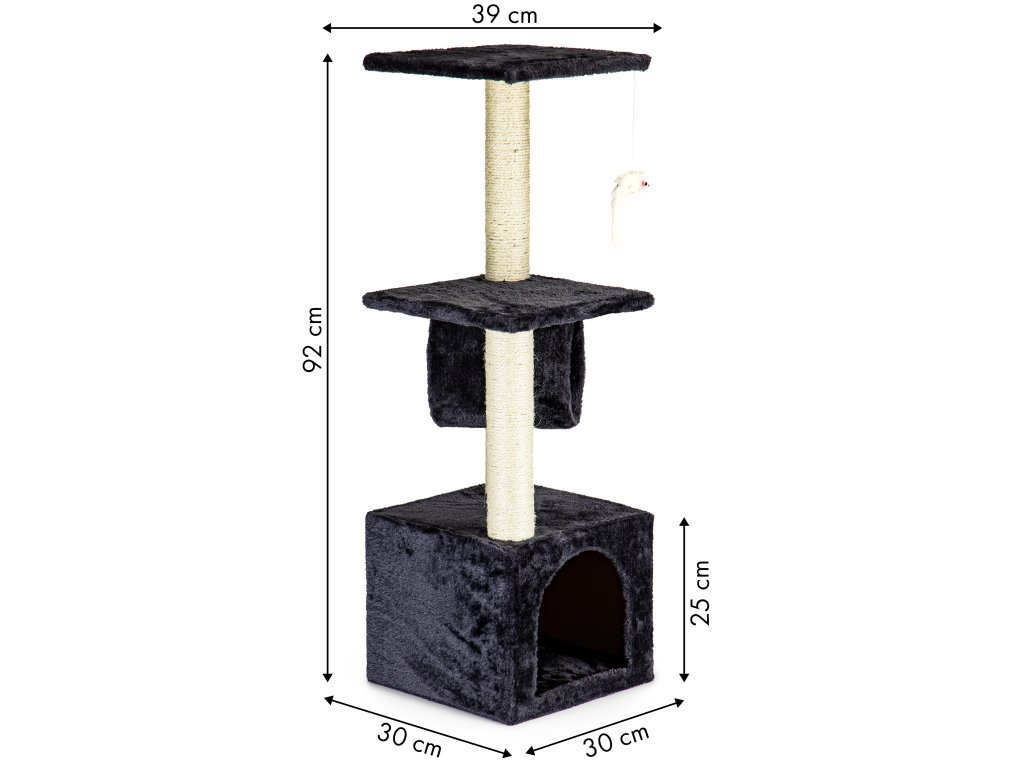 3-úrovňový škrabadlo se 2 plošinami, uzavřeným domečkem a zavěšenou trubkou poskytuje místo pro hraní, škrábání a odpočinek. Sloupkami obalenými sisalem jsou ideální pro ostření drápů a chrání nábytek před poškozením, zatímco měkký plyš zajišťuje pohodlí při používání. Model je vybaven visící hračkou, která stimuluje aktivitu kočky.