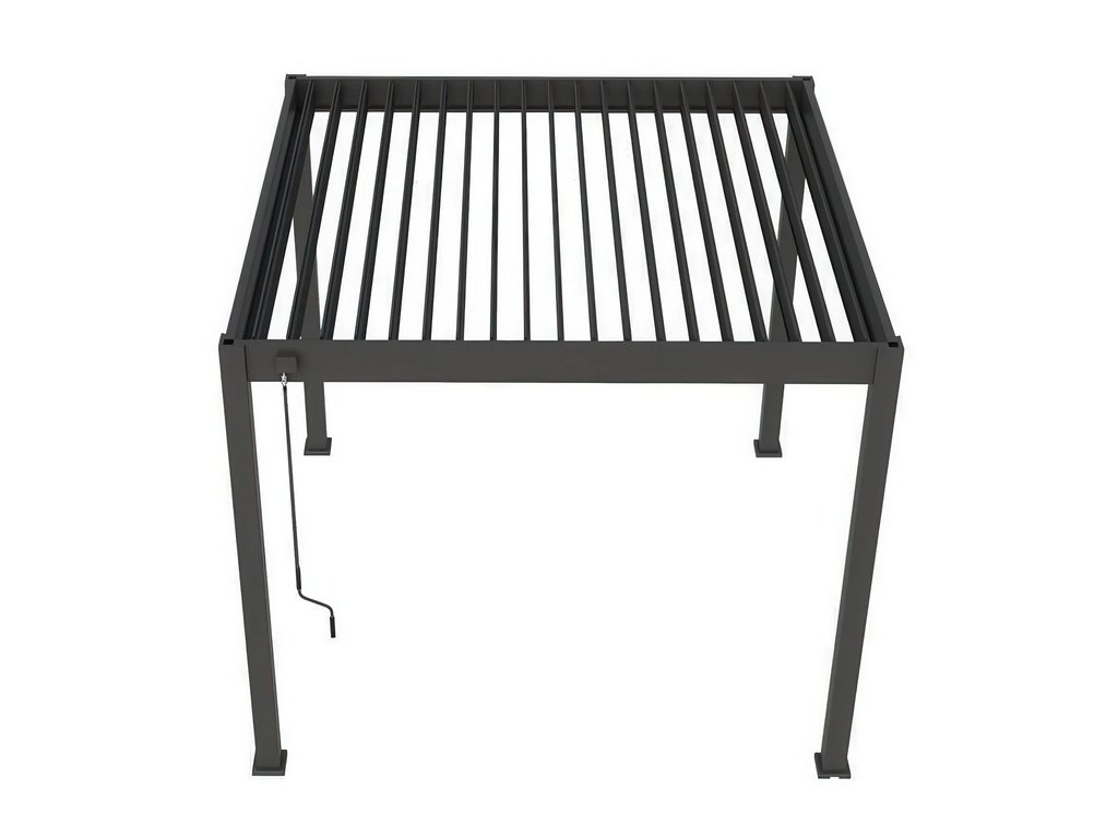 Ruční systém nastavení lamel umožňuje přesné ovládání množství světla dopadajícího pod pergolu. Díky němu snadno vytvoříte příjemný stín během horkých dnů nebo lamely pootevřete, abyste vpustili více slunečních paprsků. Intuitivní ovládací mechanismus funguje plynule a nevyžaduje použití velké síly, což umožňuje rychlou a pohodlnou změnu nastavení. Díky tomuto funkčnímu řešení si můžete užít maximální pohodlí při odpočinku bez ohledu na povětrnostní podmínky.