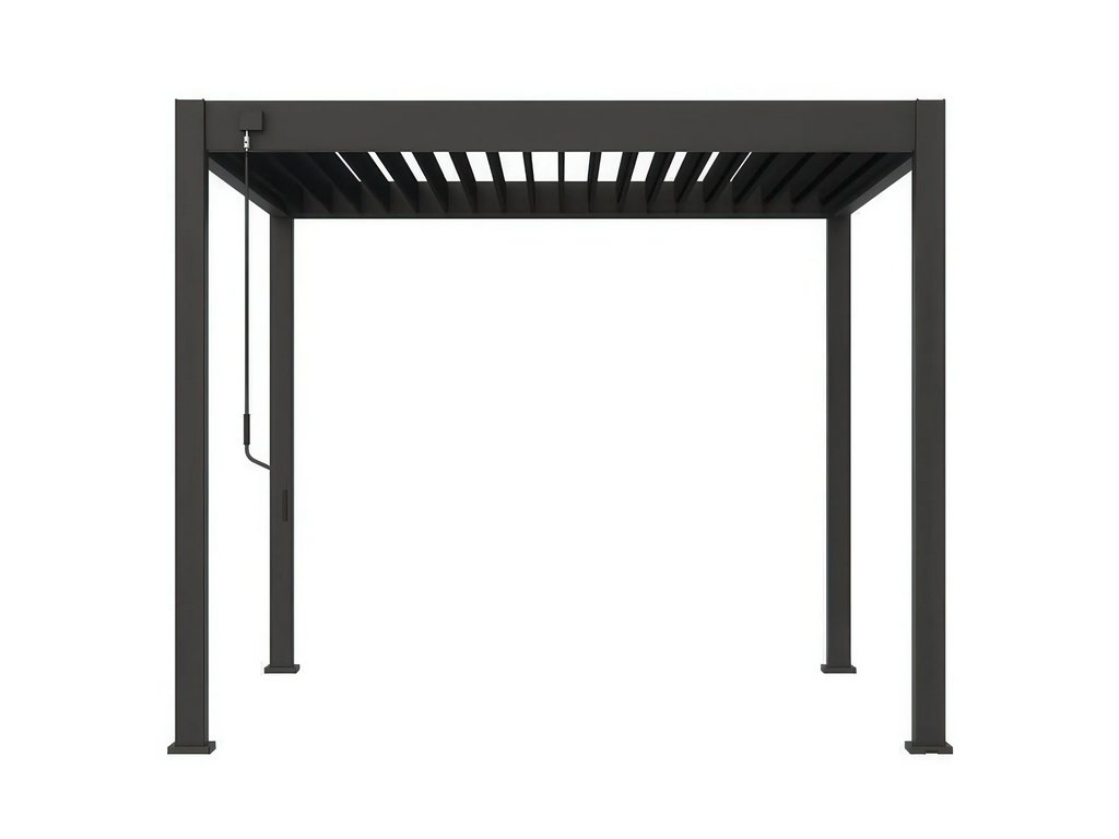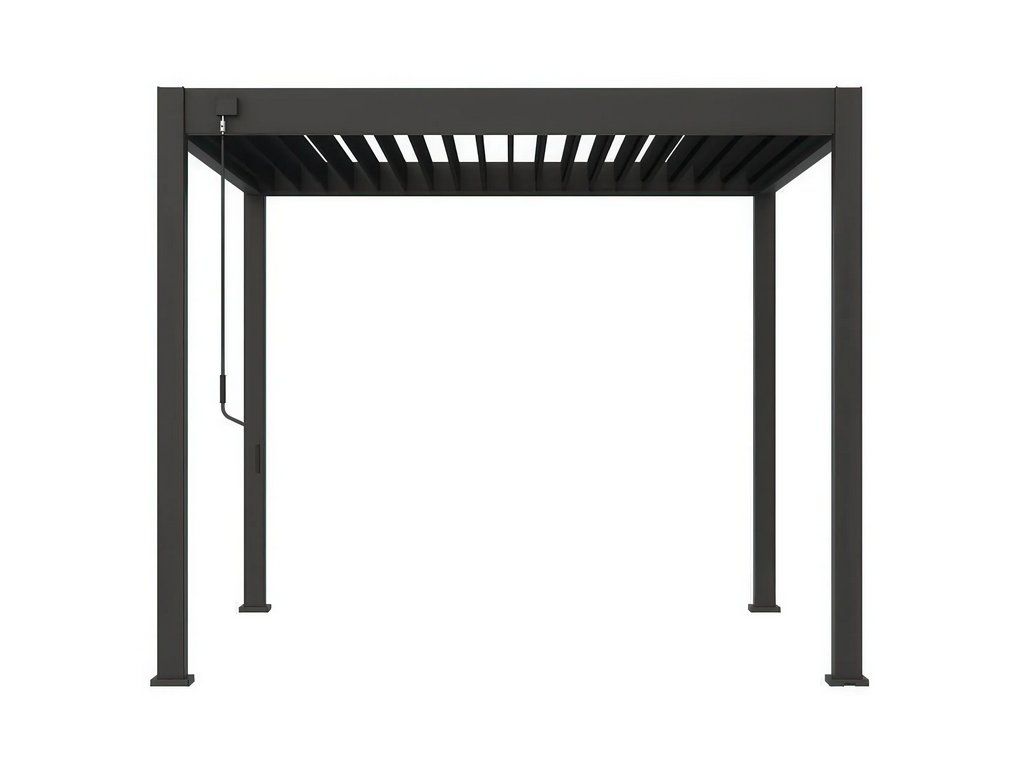 Střecha pergoly je vybavena inovativním systémem dvouvrstvých lamel, které se překrývají a vytvářejí účinnou ochrannou bariéru. Taková konstrukce skvěle chrání před intenzivním slunečním zářením a zajišťuje komfortní podmínky pro odpočinek na čerstvém vzduchu. Díky tomu si můžete užít relaxaci bez ohledu na proměnlivé počasí.