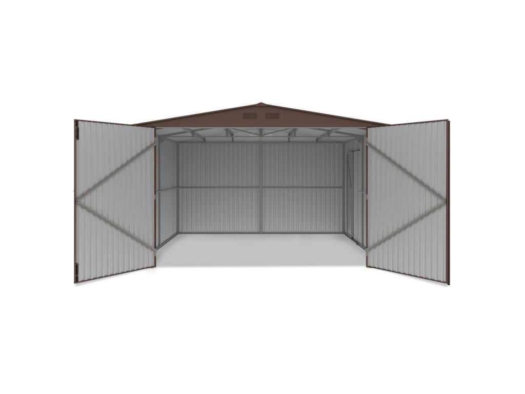 Kovová garáž Kingston je perfektním řešením pro ty, kteří potřebují prostor pro uložení auta, motocyklu nebo zahradního nářadí. Garáž je vyrobena z vysoce kvalitní oceli, je mimořádně odolná a odolná vůči korozi a mechanickému poškození. Garáž je navíc vybavena posuvnými bočními dveřmi, které nejen usnadňují používání, ale také umožňují zamykání zevnitř pro větší bezpečnost. Sedlová střecha garáže Hardmaister Kingston zabraňuje hromadění dešťové vody a sněhu, zatímco větrací otvory zajišťují správnou cirkulaci vzduchu. To zabraňuje hromadění vlhkosti uvnitř a pomáhá chránit uložené předměty před plísní a korozí.