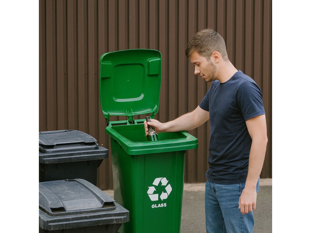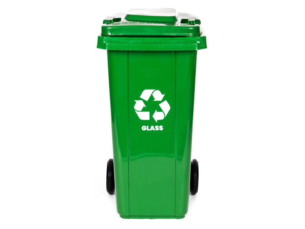 - Zelená popelnice: sklo (skleněné láhve a sklenice bez uzávěrů, víček nebo zátok).