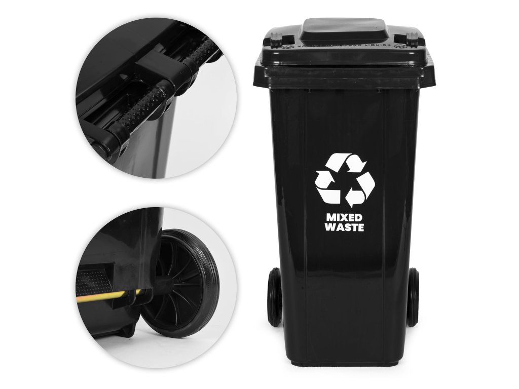 Popelnice na smíšený odpad 120 l, gumová kola - černá