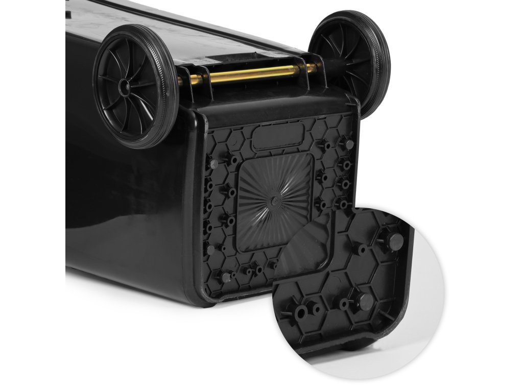 Je vyrobena z vysoce kvalitního HDPE plastu, je odolná proti UV záření, chemikáliím a mechanickému poškození, což zaručuje dlouhou životnost. Těsné víko zabraňuje vnikání vody a úniku pachů. Robustní kolečka a ergonomická rukojeť usnadňují přemísťování koše i při plném naplnění. Koš splňuje normy umožňující svoz komunálními popelářskými vozy, což zaručuje jeho univerzálnost a umožňuje vyprázdnění odpadu popelářskými vozy. S objemem 120 l je ideální pro domácnosti, podniky a servisní zařízení, kde zajišťuje čistotu a pohodlné třídění odpadu.