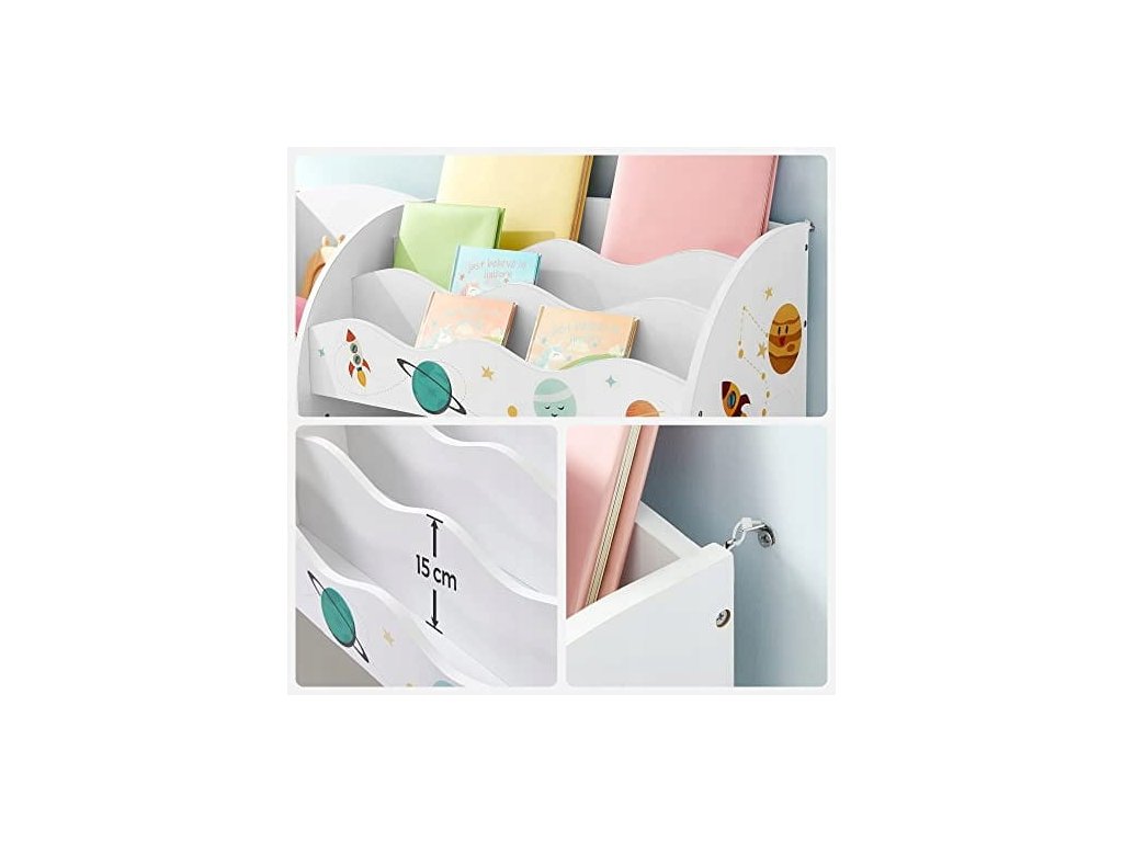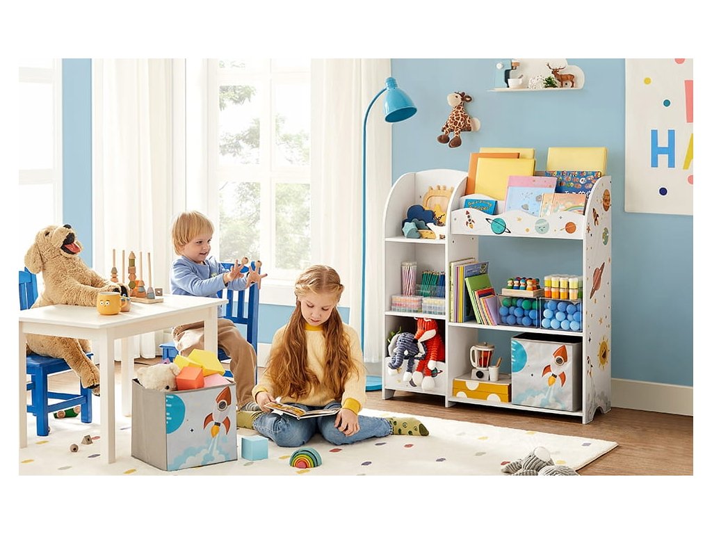 - Výška přizpůsobená dětem umožňuje dětem dosáhnout na knihy a hračky bez pomoci dospělých
