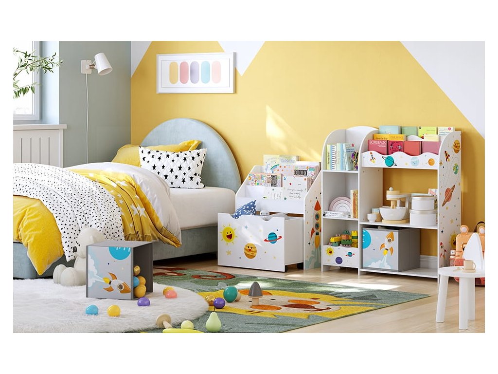 - Ozdobené kosmickými motivy s raketami a planetami, které podnítí fantazii. Krabičky jsou odolné, ale lehké a perfektně se vejdou na polici, čímž vytvářejí ucelený tematický vzhled.