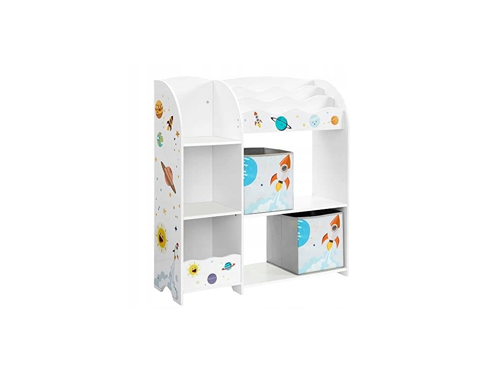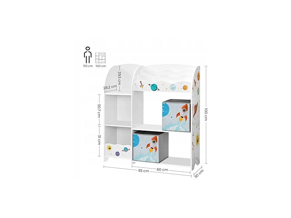Praktická police je ideální do dětského pokoje, obývacího pokoje nebo herny. Má 5 funkčních polic na hračky, 3 otevřené přihrádky na knihy a 2 prostorné boxy na uložení menších předmětů. Regál je vybaven zaoblenými rohy a systémem proti převrácení, díky čemuž zajišťuje vysokou úroveň bezpečnosti při každodenním používání.