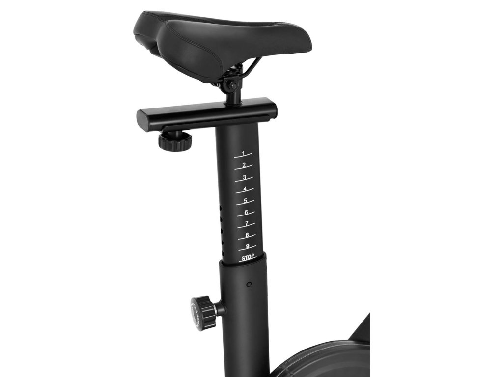 Rotoped se snadno přizpůsobí vaší výšce. Nastavitelná je výška řídítek (od 106 do 117 cm v 9 úrovních), výška sedla (od 83 do 100 cm v 10 úrovních) a poloha sedla (od 40 do 58 cm). Pohodlné sedlo umožňuje dlouhé tréninky. Vyvážené pedály s popruhy na nohy a setrvačníkem o hmotnosti 13 kg zajišťují plynulé a příjemné otáčení kol. Tento domácí rotoped je také vybaven řemenovým pohonem, který se snáze a odolněji ovládá a nastavuje než řetěz jízdního kola. Velký LCD displej umožňuje odečítat čas tréninku, rychlost, ujetou vzdálenost a spálené kalorie. Rotoped má také držák na váš chytrý telefon nebo tablet. Vlastnosti produktu: