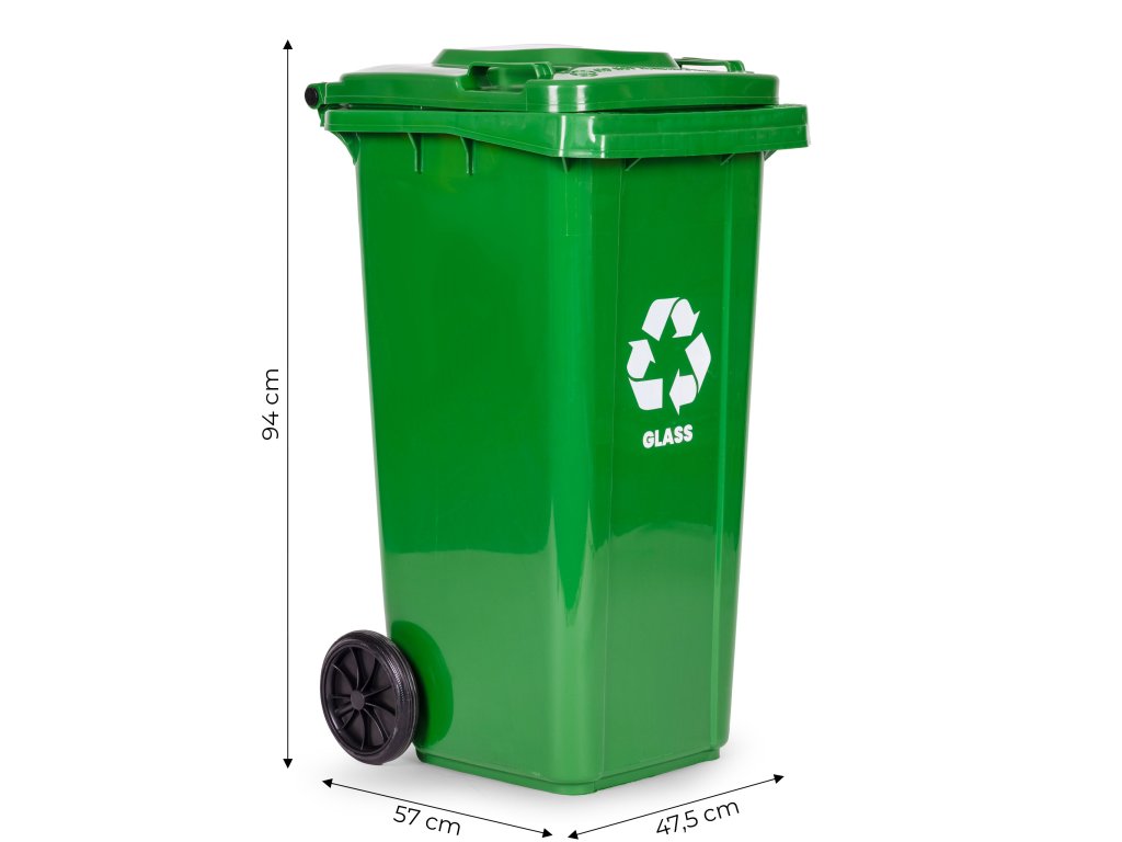 - Zelená popelnice: sklo (láhve a sklenice bez uzávěrů, víček nebo zátok).