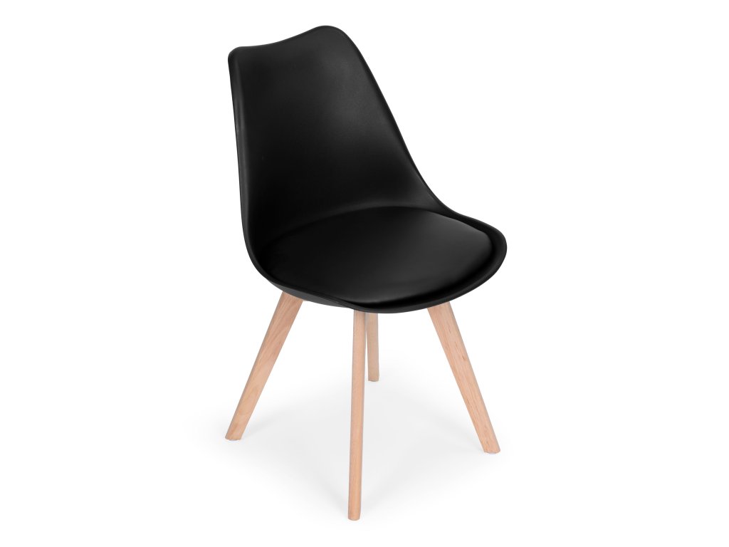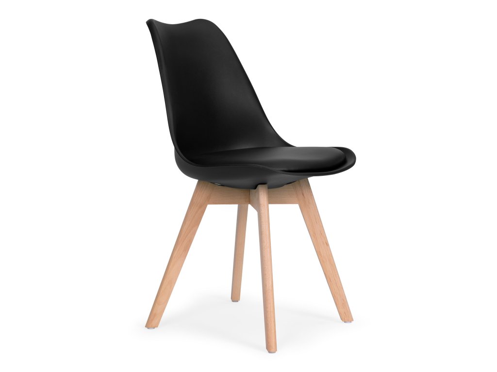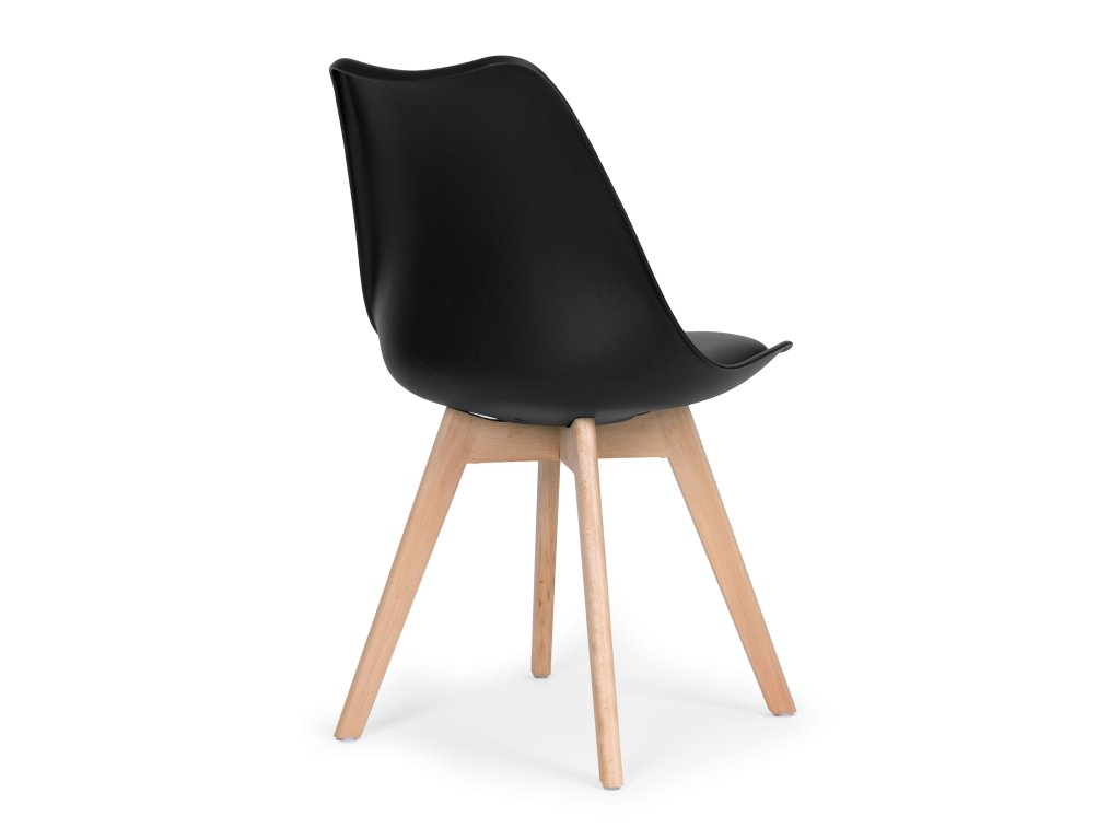 Kombinace bukových nohou s elegantním polštářem z ekokože dodává židli moderní a zároveň útulný vzhled.