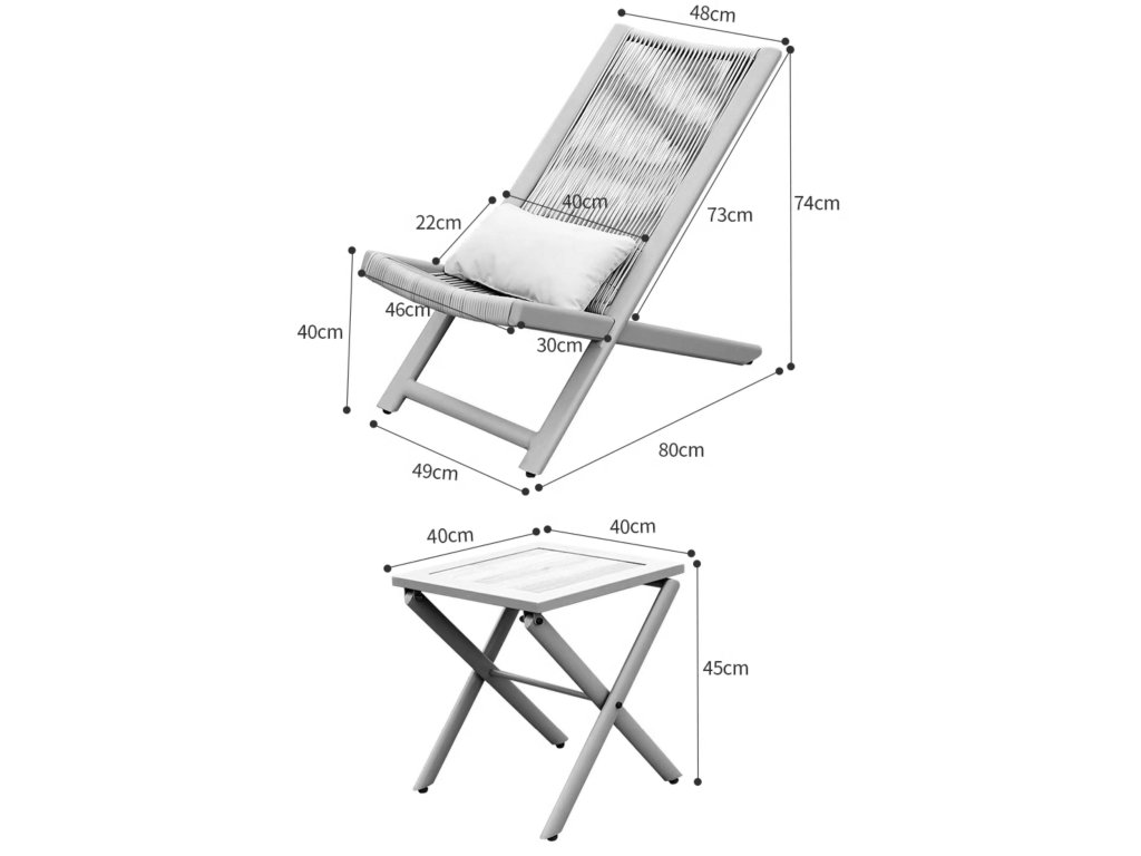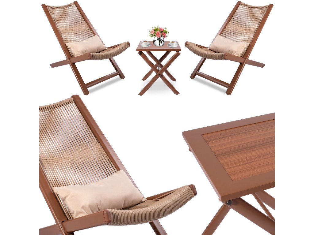 Sada zahradního nábytku Chill je ideálním řešením pro relaxaci na čerstvém vzduchu. Je vyrobená z odolného plastu a práškově lakované oceli, což zaručuje jeho odolnost a dlouhou životnost. Sada obsahuje dvě pohodlná křesla s měkkými polštáři a skládací stolek. Skvělý nábytek do zahrady, na terasu nebo balkon. Dodatečné polštáře zvyšují pohodlí při používání. Estetická a pevná volba pro relaxaci na čerstvém vzduchu.
