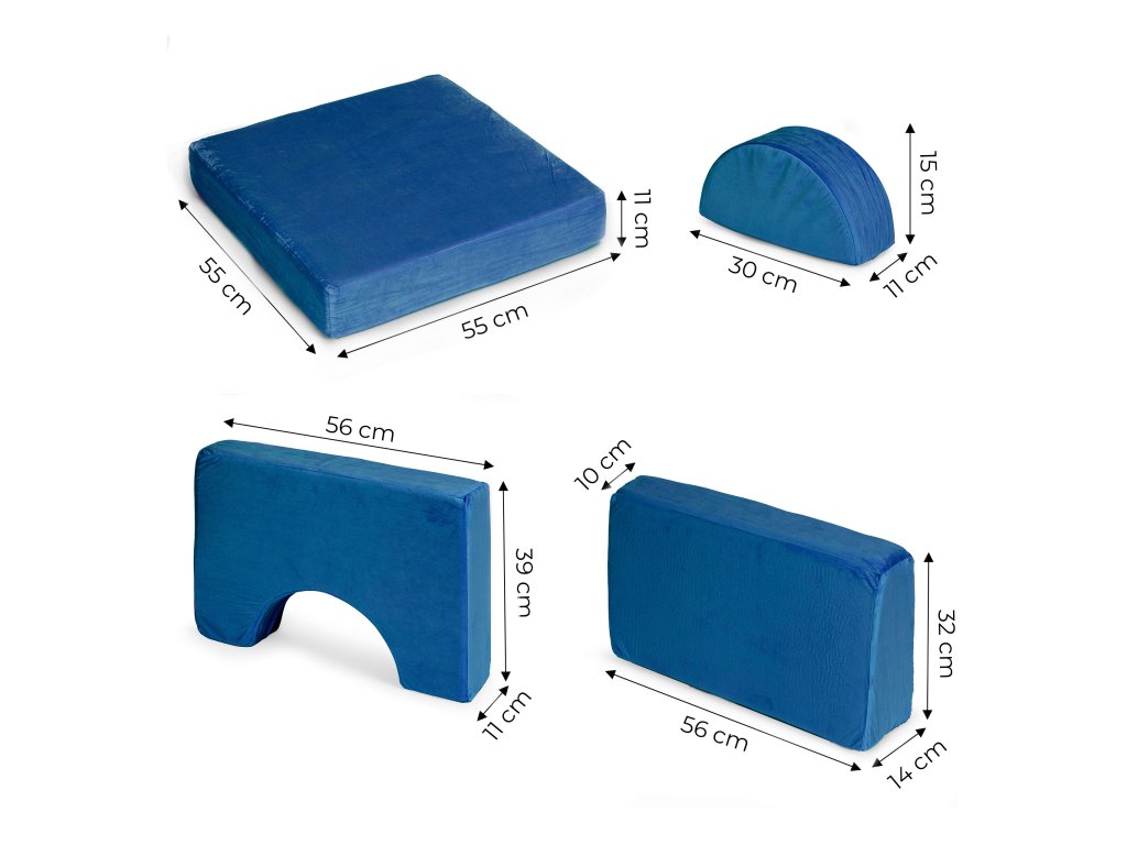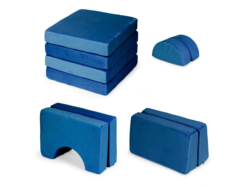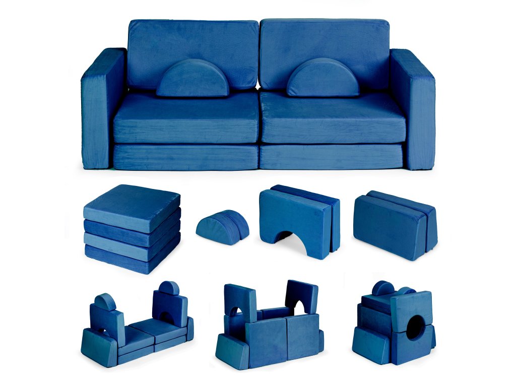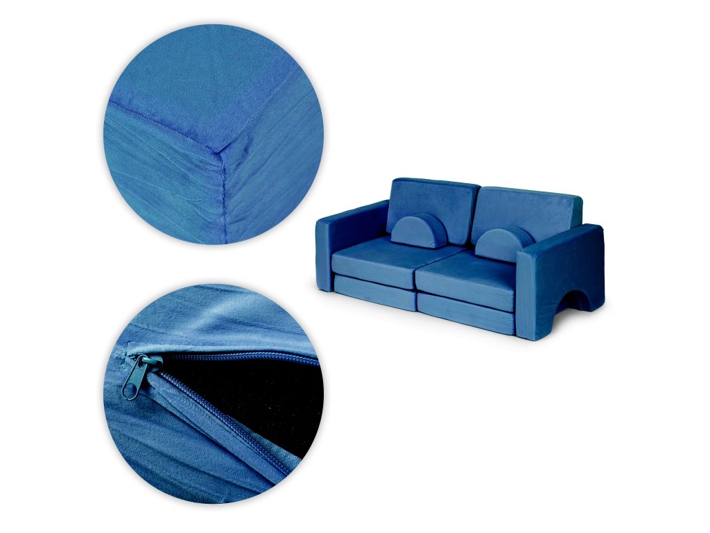 Skládací modulární pohovka pro děti, velká, 2místná, 10 měkkých polštářů – modrá
