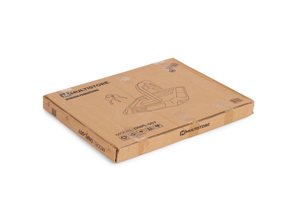 - Ve složeném stavu má zámek výšku pouze 4,5 cm, takže je bezpečný pro pneumatiky v případě náhodného přejetí.