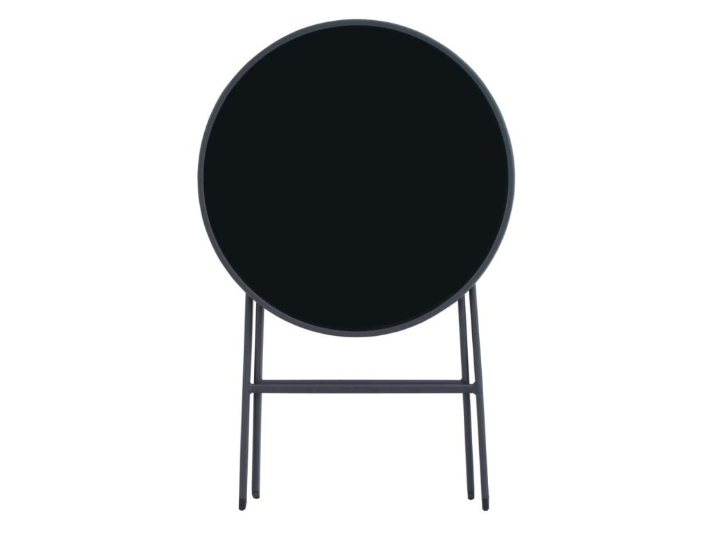 Stůl má kulatou desku z tvrzeného skla . Je odolná vůči povětrnostním vlivům a mechanickému poškození. Díky tomu se nemusíte bát, že se rozbije, pokud do něj náhodou narazí šálek nebo talíř. Okraj desky je opatřen černým rámem, který chrání její hrany a dodává jí jedinečný charakter.