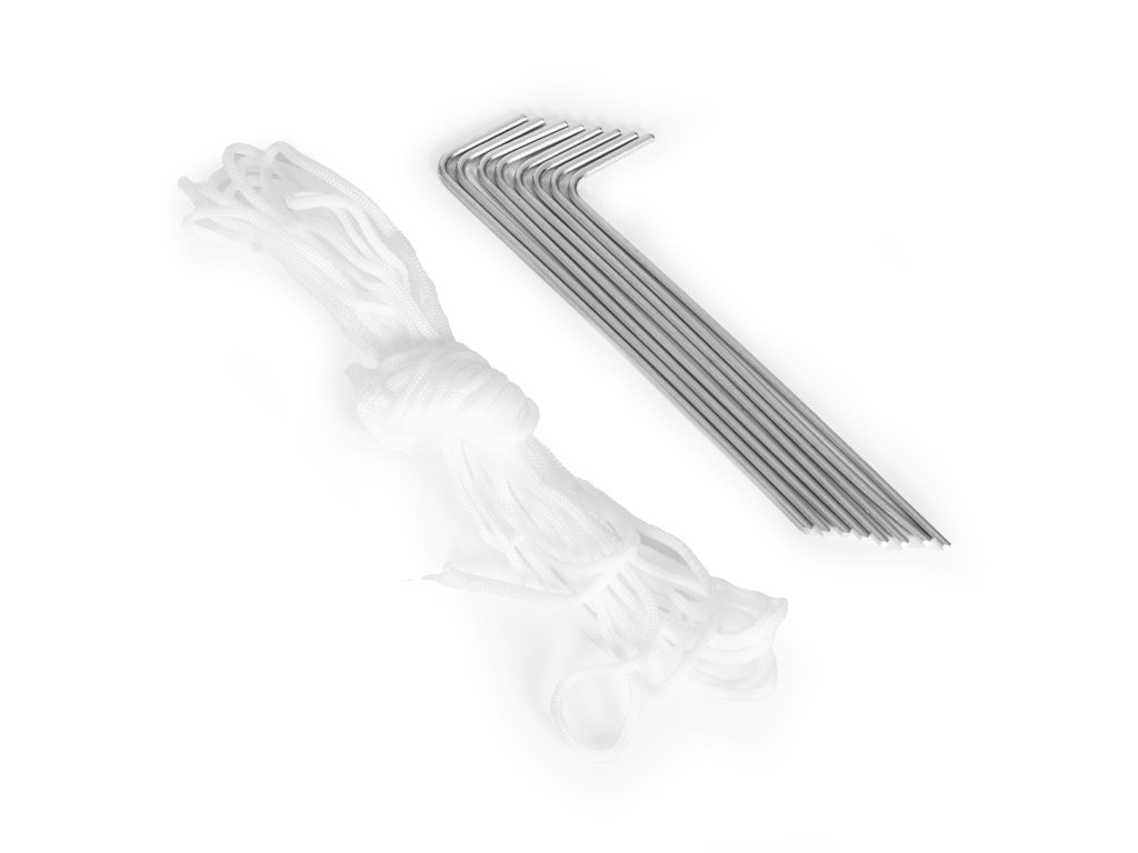 - Součástí balení: 4 dvoumetrová lana, 8 kolíků