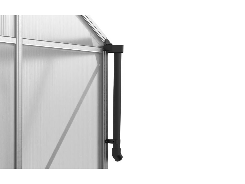 Šikmé boční příčky vyrobené z tvrdší oceli s práškovým nástřikem zaručují maximální tuhost a odolnost konstrukce skleníku a perfektně ladí s barvou rámu.