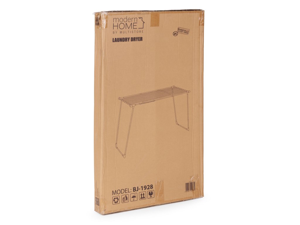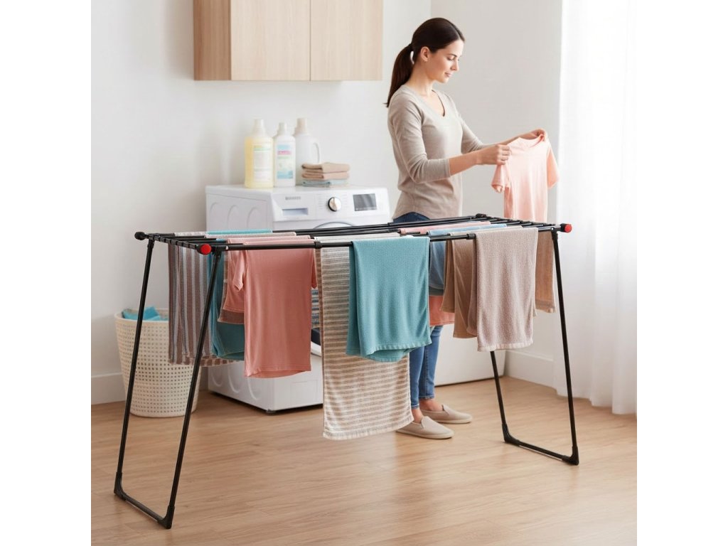 Sušák byl navržen s ohledem na pohodlné skladování – skládání je rychlé, intuitivní a nevyžaduje žádnou sílu. Po sklopení zabírá minimální množství místa, takže se snadno vejde do skříně, za dveře nebo vedle pračky.